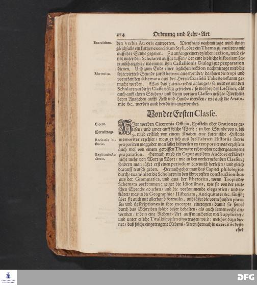 Ordnung und Lehr=Art / Wie selbige in dem PAEDAGOGIO zu Glaucha an Halle eingeführet ist: Worinnen vornemlich zu befinden / Wie die Jugend / nebst der Anweisung zum Christenthum / in Sprachen und Wissenschafften / als in der Lateinischen / Griechischen / Ebräischen und Französischen Sprache / wie auch in Calligraphia, Geographia, Historia, Arithmetica, Geometria, Oratoria, Theologia, und in denen Fundamentis Astronomicis, Botanicis, Anatomicis &c.auf eine kurtze und leichte methode zu unterrichten / und zu denen studiis Academicis zu præpariren sey
