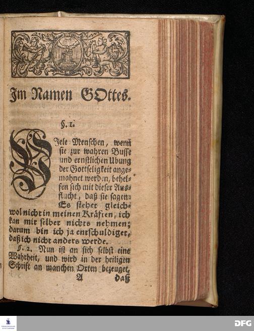August Hermann Franckens / S.S.Theol.P.Ord.Past.Vlric.& Schol. Kurtzer Unterricht von der Möglichkeit der wahren Bekehrung zu GOtt und des thätigen Christenthums in Schriftmäßiger Beantwortung der gar gemeinen, aber nichtigen Ausflucht / So darin gesuchet wird, daß man ihme selbst nichts nehmen, noch aus eigenen Kräften sich bekehren oder frömmer werden könne. Revidirt und zum sechstenmal gedruckt. HALLE, in Verlegung des Wäysenhauses. 1728.