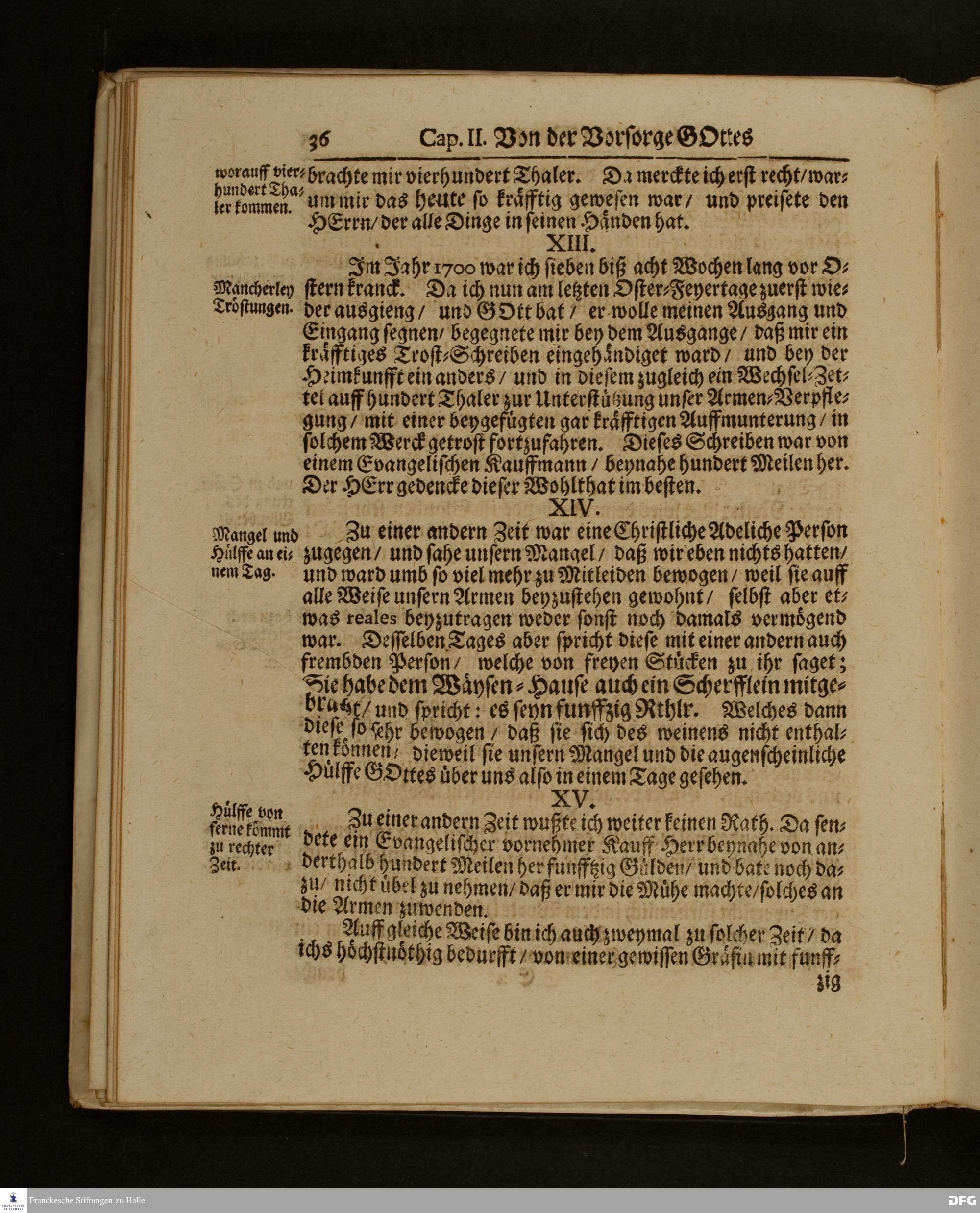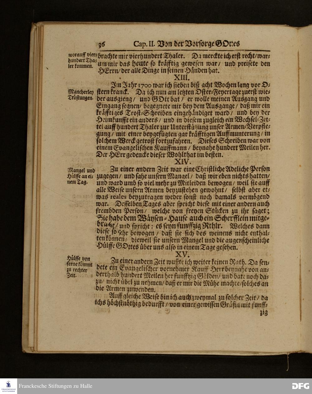 Die Fußstapffen Des noch lebenden und waltenden liebreichen und getreuen GOTTES / Zur Beschämung des Unglaubens / und Stärckung des Glaubens / Durch den Ausführlichen Bericht Vom Wäysen=Hause / Armen=Schulen / und übriger Armen=Verpflegung Zu Glaucha an Halle / Wie selbige fortgesetzet biß Ostern Anno 1701. Entdecket von August Hermann Francken / S.Th.Prof.Ord.und Past. [Spruch.] Mit Königl.Preußischen und Churfl.Brandenb.Privilegio. In Verlegung des Wäysen=Hauses zu Glaucha an Halle / 1701.