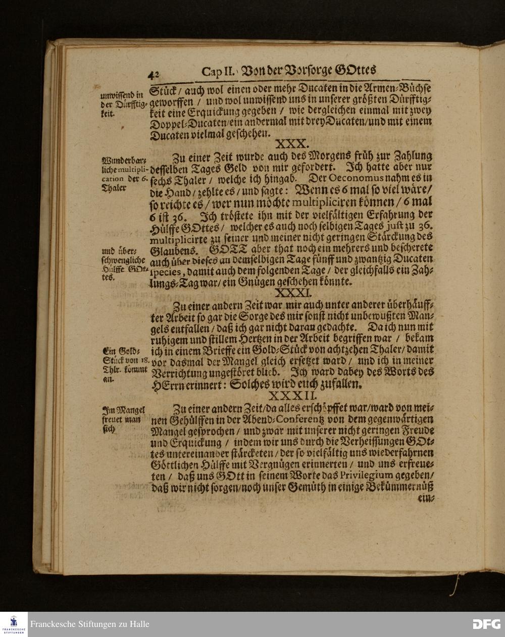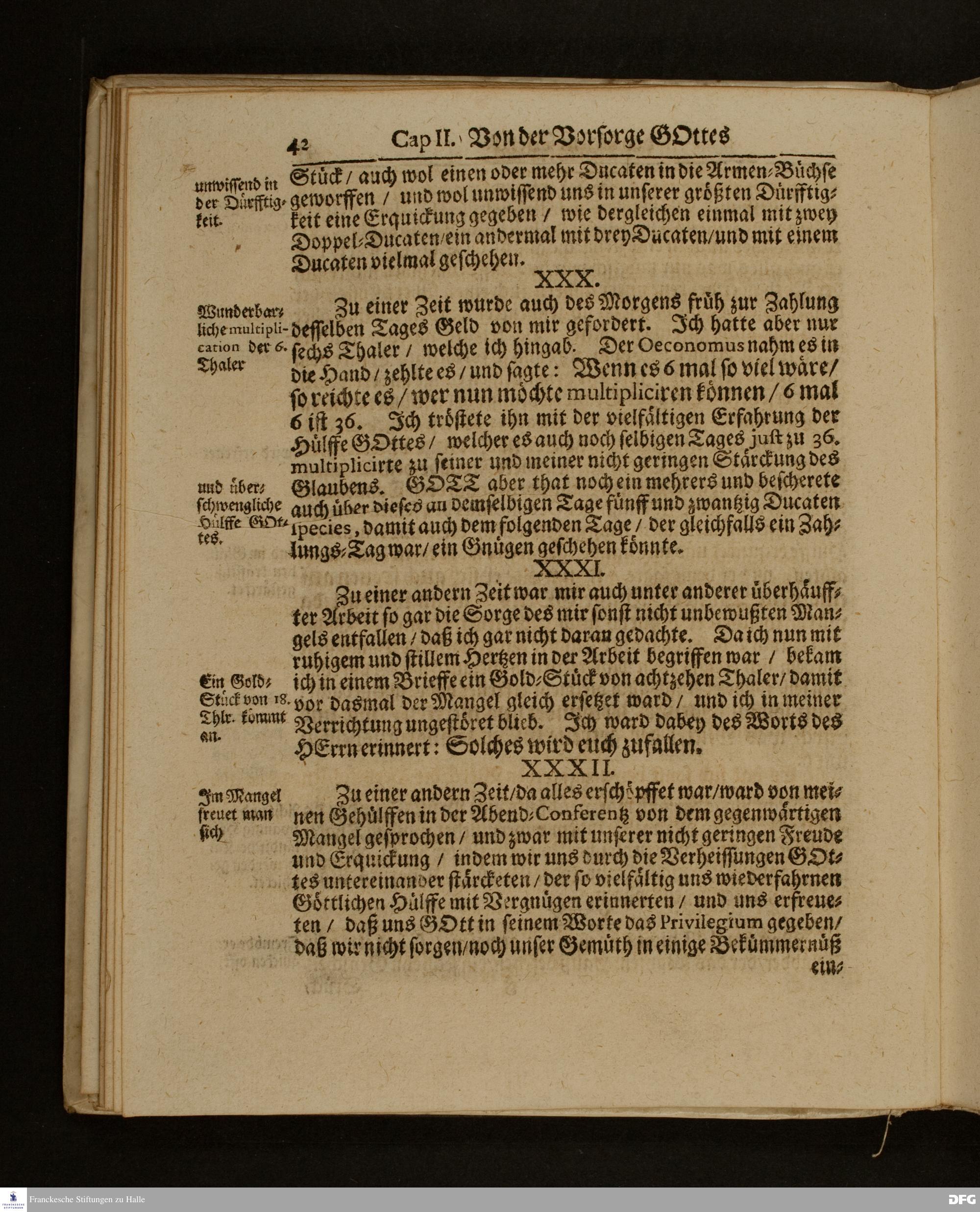Die Fußstapffen Des noch lebenden und waltenden liebreichen und getreuen GOTTES / Zur Beschämung des Unglaubens / und Stärckung des Glaubens / Durch den Ausführlichen Bericht Vom Wäysen=Hause / Armen=Schulen / und übriger Armen=Verpflegung Zu Glaucha an Halle / Wie selbige fortgesetzet biß Ostern Anno 1701. Entdecket von August Hermann Francken / S.Th.Prof.Ord.und Past. [Spruch.] Mit Königl.Preußischen und Churfl.Brandenb.Privilegio. In Verlegung des Wäysen=Hauses zu Glaucha an Halle / 1701.