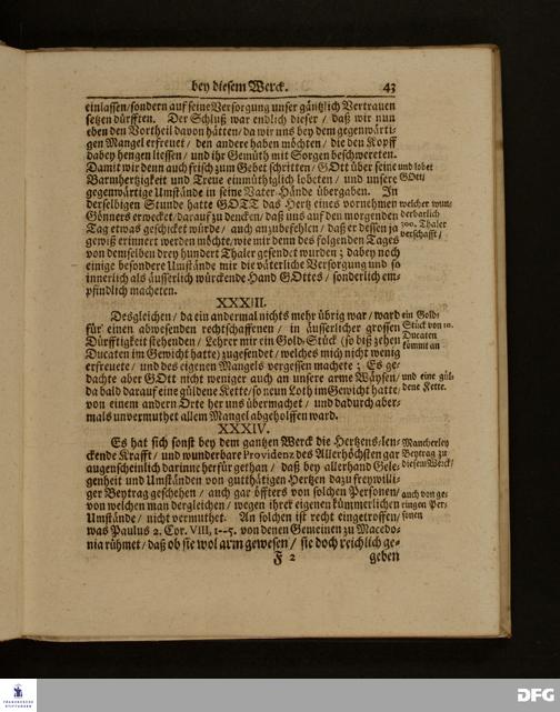Die Fußstapffen Des noch lebenden und waltenden liebreichen und getreuen GOTTES / Zur Beschämung des Unglaubens / und Stärckung des Glaubens / Durch den Ausführlichen Bericht Vom Wäysen=Hause / Armen=Schulen / und übriger Armen=Verpflegung Zu Glaucha an Halle / Wie selbige fortgesetzet biß Ostern Anno 1701. Entdecket von August Hermann Francken / S.Th.Prof.Ord.und Past. [Spruch.] Mit Königl.Preußischen und Churfl.Brandenb.Privilegio. In Verlegung des Wäysen=Hauses zu Glaucha an Halle / 1701.