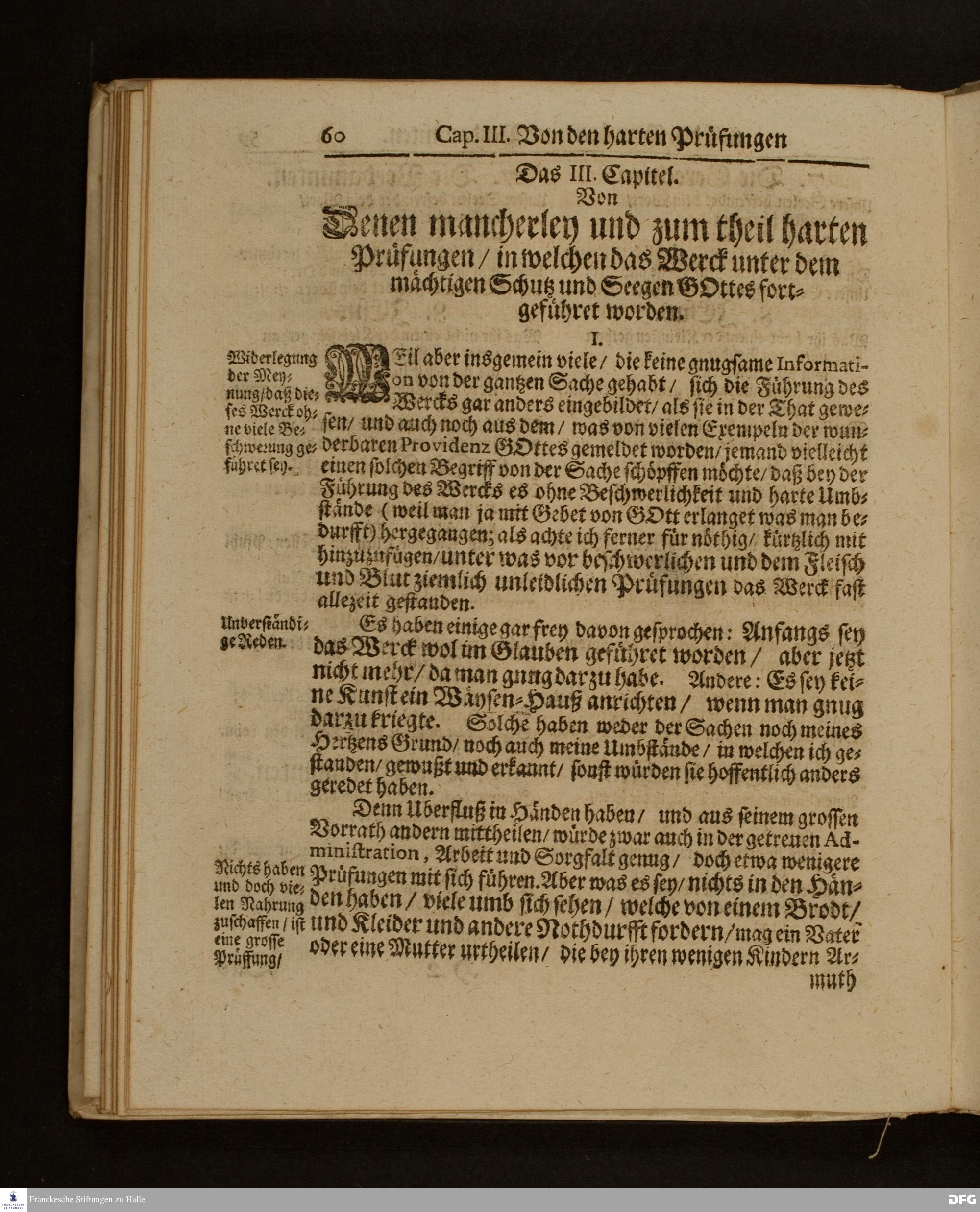 Die Fußstapffen Des noch lebenden und waltenden liebreichen und getreuen GOTTES / Zur Beschämung des Unglaubens / und Stärckung des Glaubens / Durch den Ausführlichen Bericht Vom Wäysen=Hause / Armen=Schulen / und übriger Armen=Verpflegung Zu Glaucha an Halle / Wie selbige fortgesetzet biß Ostern Anno 1701. Entdecket von August Hermann Francken / S.Th.Prof.Ord.und Past. [Spruch.] Mit Königl.Preußischen und Churfl.Brandenb.Privilegio. In Verlegung des Wäysen=Hauses zu Glaucha an Halle / 1701.