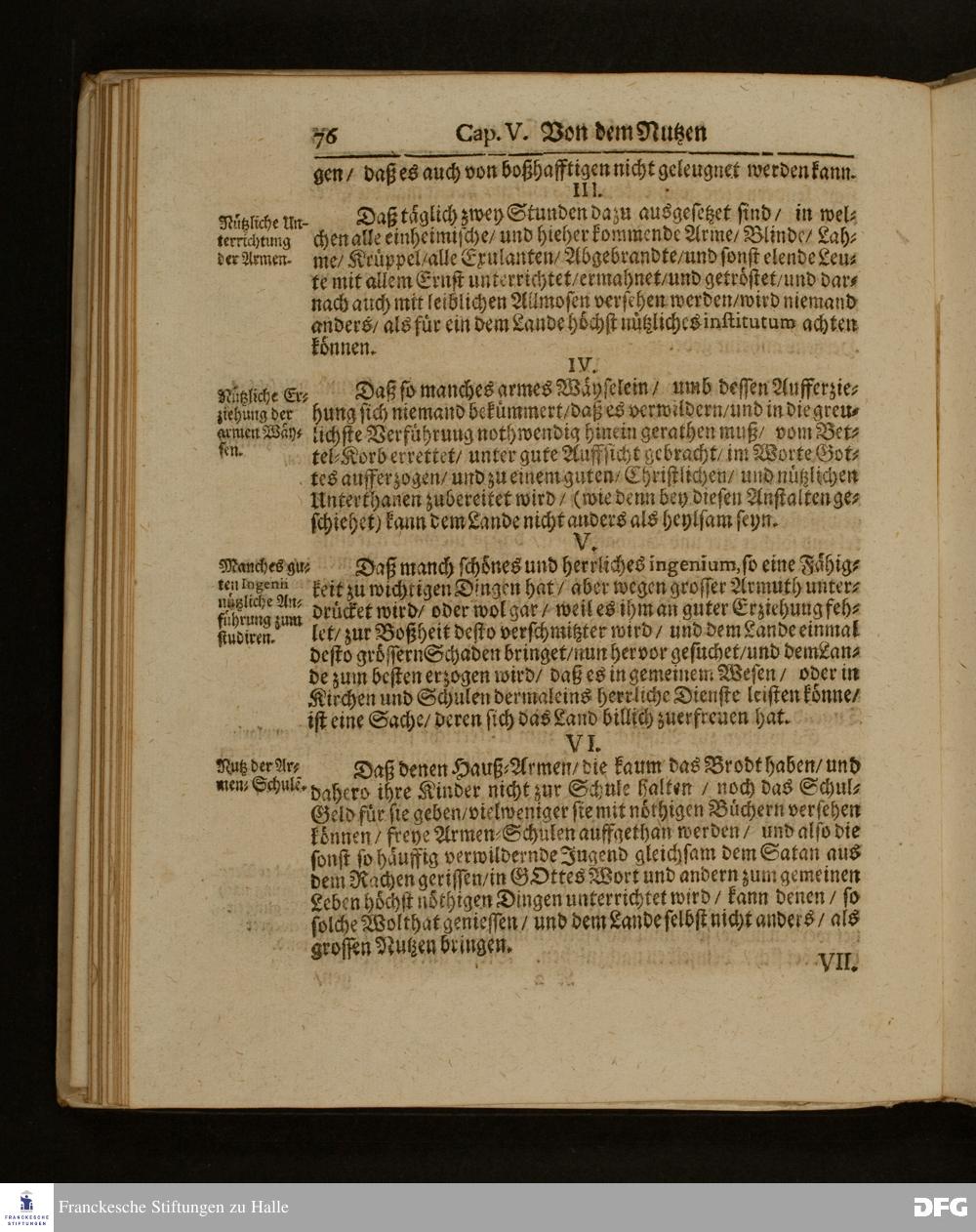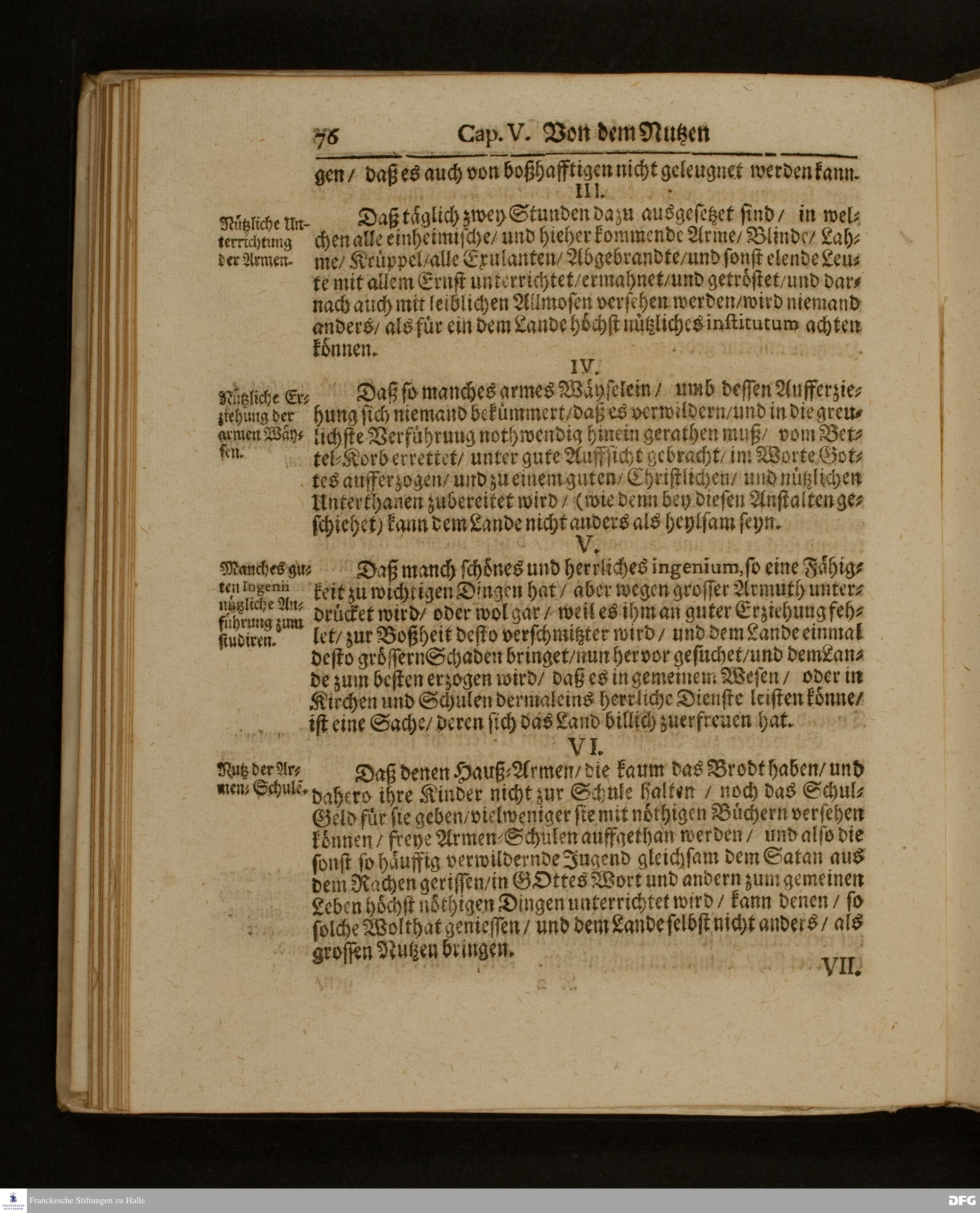 Die Fußstapffen Des noch lebenden und waltenden liebreichen und getreuen GOTTES / Zur Beschämung des Unglaubens / und Stärckung des Glaubens / Durch den Ausführlichen Bericht Vom Wäysen=Hause / Armen=Schulen / und übriger Armen=Verpflegung Zu Glaucha an Halle / Wie selbige fortgesetzet biß Ostern Anno 1701. Entdecket von August Hermann Francken / S.Th.Prof.Ord.und Past. [Spruch.] Mit Königl.Preußischen und Churfl.Brandenb.Privilegio. In Verlegung des Wäysen=Hauses zu Glaucha an Halle / 1701.