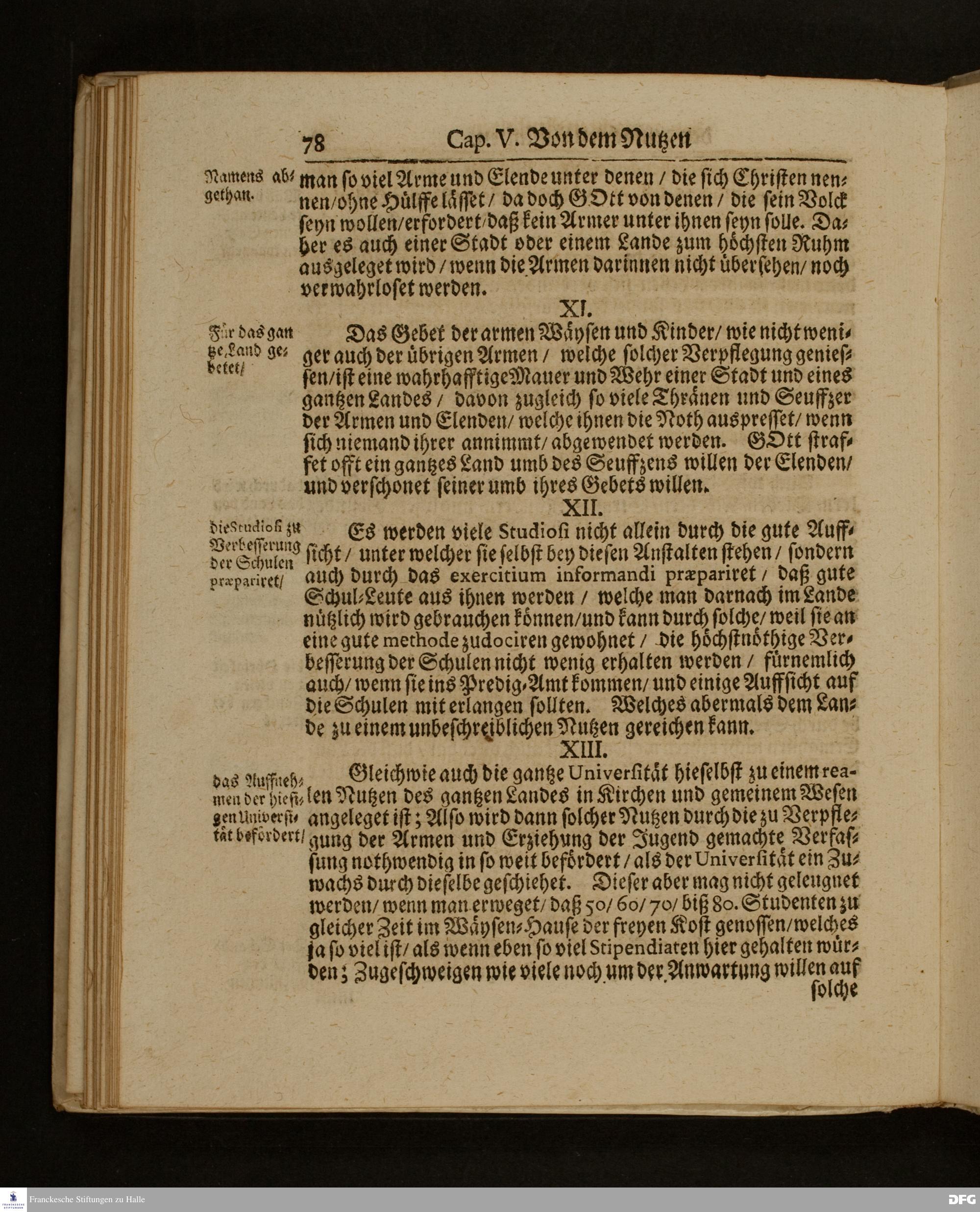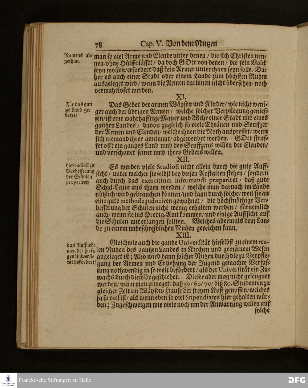Die Fußstapffen Des noch lebenden und waltenden liebreichen und getreuen GOTTES / Zur Beschämung des Unglaubens / und Stärckung des Glaubens / Durch den Ausführlichen Bericht Vom Wäysen=Hause / Armen=Schulen / und übriger Armen=Verpflegung Zu Glaucha an Halle / Wie selbige fortgesetzet biß Ostern Anno 1701. Entdecket von August Hermann Francken / S.Th.Prof.Ord.und Past. [Spruch.] Mit Königl.Preußischen und Churfl.Brandenb.Privilegio. In Verlegung des Wäysen=Hauses zu Glaucha an Halle / 1701.