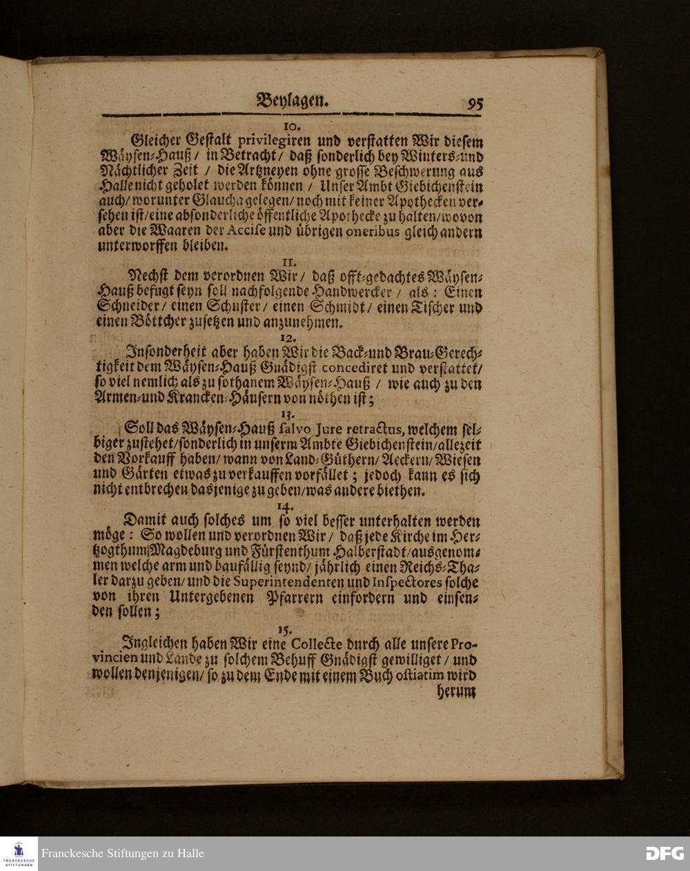 Die Fußstapffen Des noch lebenden und waltenden liebreichen und getreuen GOTTES / Zur Beschämung des Unglaubens / und Stärckung des Glaubens / Durch den Ausführlichen Bericht Vom Wäysen=Hause / Armen=Schulen / und übriger Armen=Verpflegung Zu Glaucha an Halle / Wie selbige fortgesetzet biß Ostern Anno 1701. Entdecket von August Hermann Francken / S.Th.Prof.Ord.und Past. [Spruch.] Mit Königl.Preußischen und Churfl.Brandenb.Privilegio. In Verlegung des Wäysen=Hauses zu Glaucha an Halle / 1701.