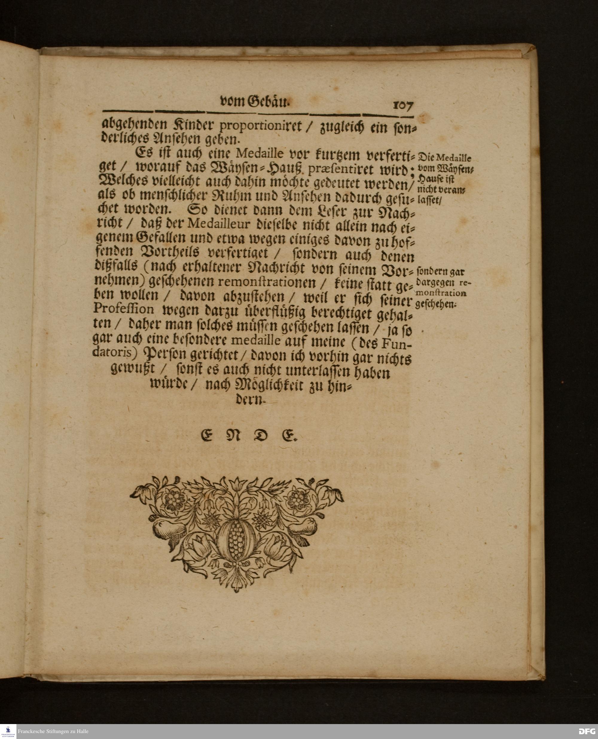 Die Fußstapffen Des noch lebenden und waltenden liebreichen und getreuen GOTTES / Zur Beschämung des Unglaubens / und Stärckung des Glaubens / Durch den Ausführlichen Bericht Vom Wäysen=Hause / Armen=Schulen / und übriger Armen=Verpflegung Zu Glaucha an Halle / Wie selbige fortgesetzet biß Ostern Anno 1701. Entdecket von August Hermann Francken / S.Th.Prof.Ord.und Past. [Spruch.] Mit Königl.Preußischen und Churfl.Brandenb.Privilegio. In Verlegung des Wäysen=Hauses zu Glaucha an Halle / 1701.