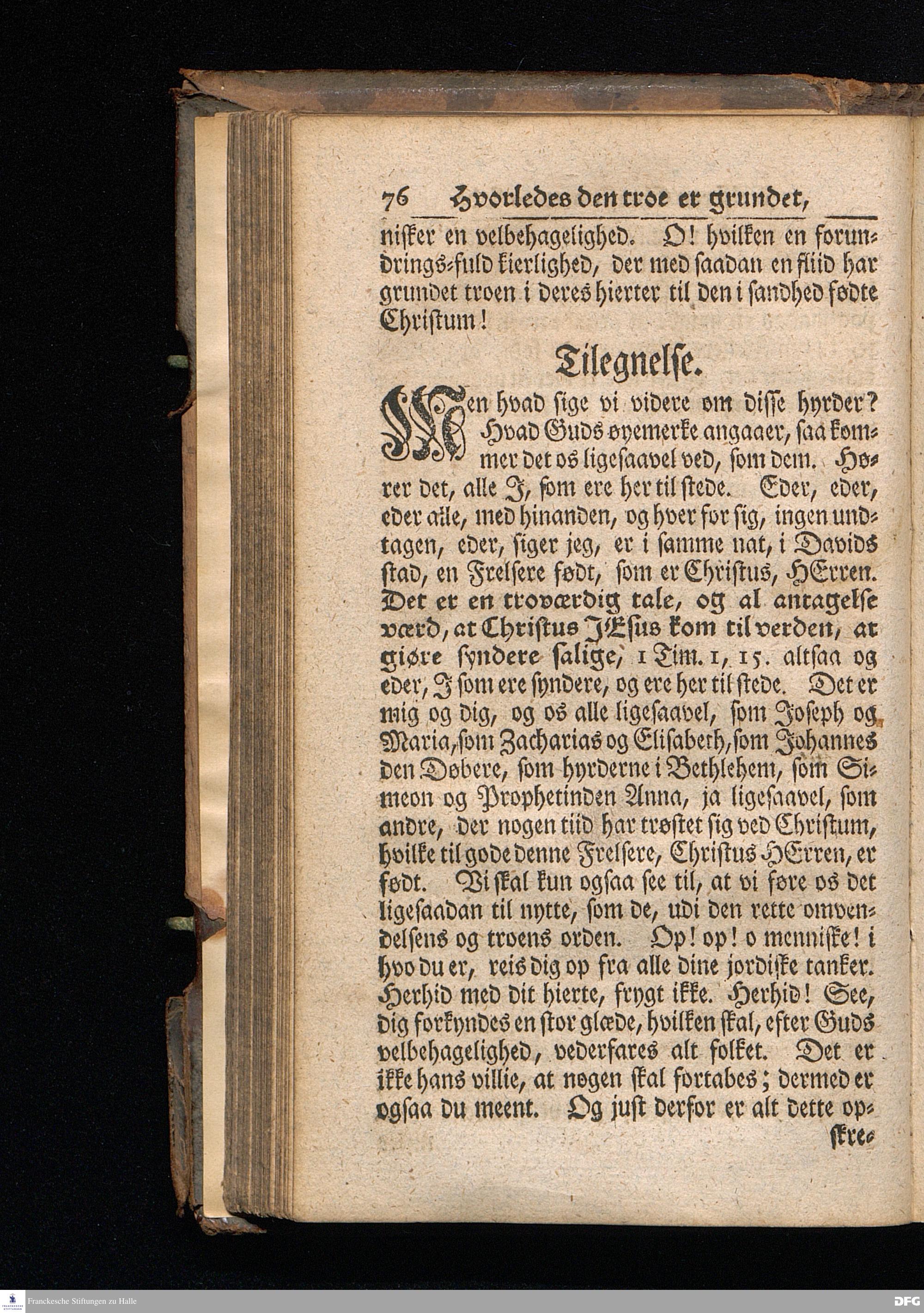 August Hermann Franckens, S. Theol. Prof. & Past. til S. Ulrich i Halle, og Gymnasii Scholarchæ, Haand=Postill, Eller Korte Prædikener Paa Søndage og Hell: Dage, Hvorudi Fornemmelig gives fornøden Opvækkelse og Anviisning til den sande, levende, kraftige, og i gode frugter sig bevisende Troe; Med Fortale og Register forsynede. Af det Tydske i det Danske Sprog oversatte, og til Trykken befordrede. Med Et Tilleg over de i Dannemark brugelige Texter, som af Auctore ey vare forklarede. KJØBENHAVN, Udi det Kongel. Wäysen=Huses Bogtrykkerie, og paa dets Forlag. Trykt af Gottmann Friderich Kisel. Aar 1752