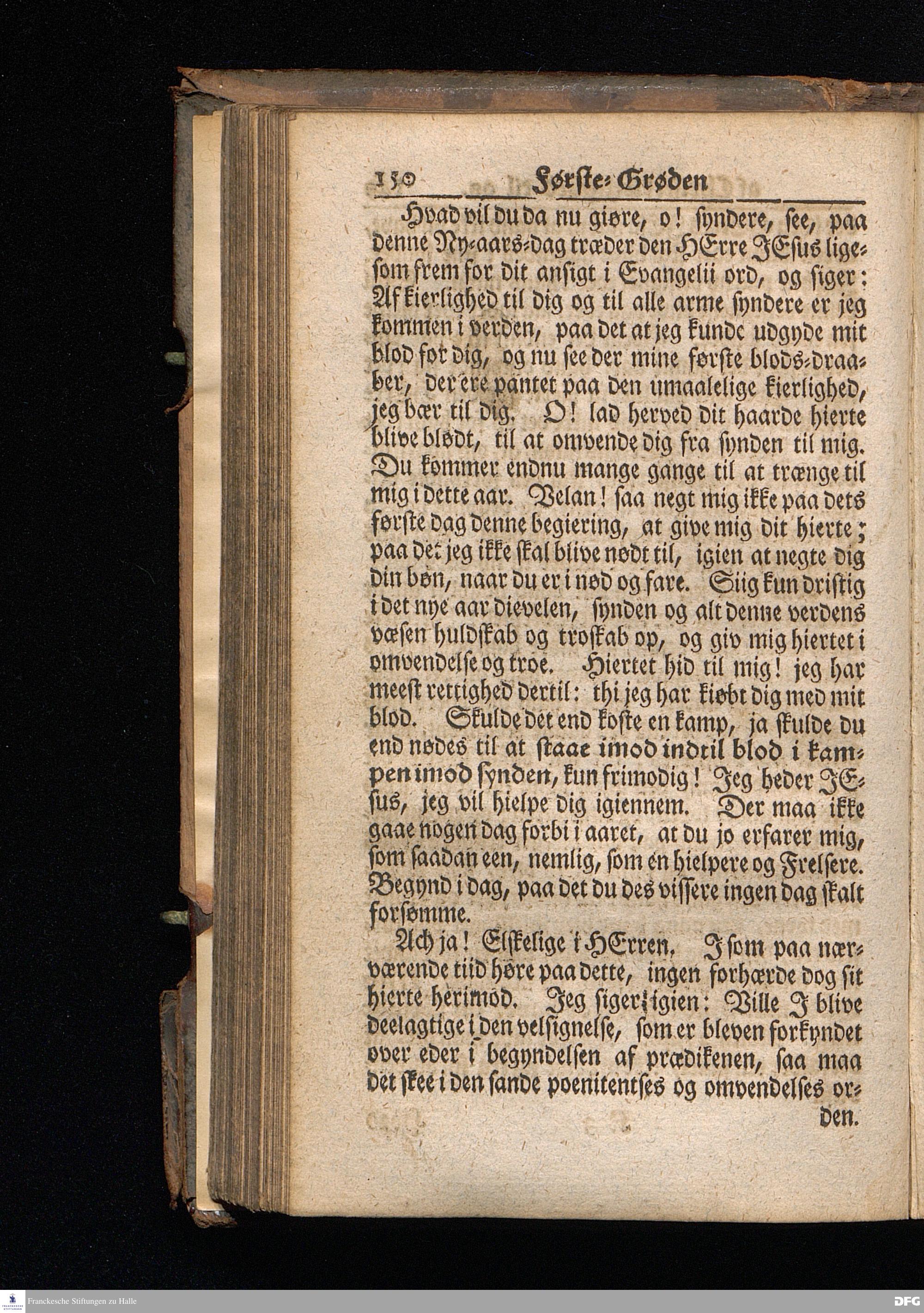 August Hermann Franckens, S. Theol. Prof. & Past. til S. Ulrich i Halle, og Gymnasii Scholarchæ, Haand=Postill, Eller Korte Prædikener Paa Søndage og Hell: Dage, Hvorudi Fornemmelig gives fornøden Opvækkelse og Anviisning til den sande, levende, kraftige, og i gode frugter sig bevisende Troe; Med Fortale og Register forsynede. Af det Tydske i det Danske Sprog oversatte, og til Trykken befordrede. Med Et Tilleg over de i Dannemark brugelige Texter, som af Auctore ey vare forklarede. KJØBENHAVN, Udi det Kongel. Wäysen=Huses Bogtrykkerie, og paa dets Forlag. Trykt af Gottmann Friderich Kisel. Aar 1752