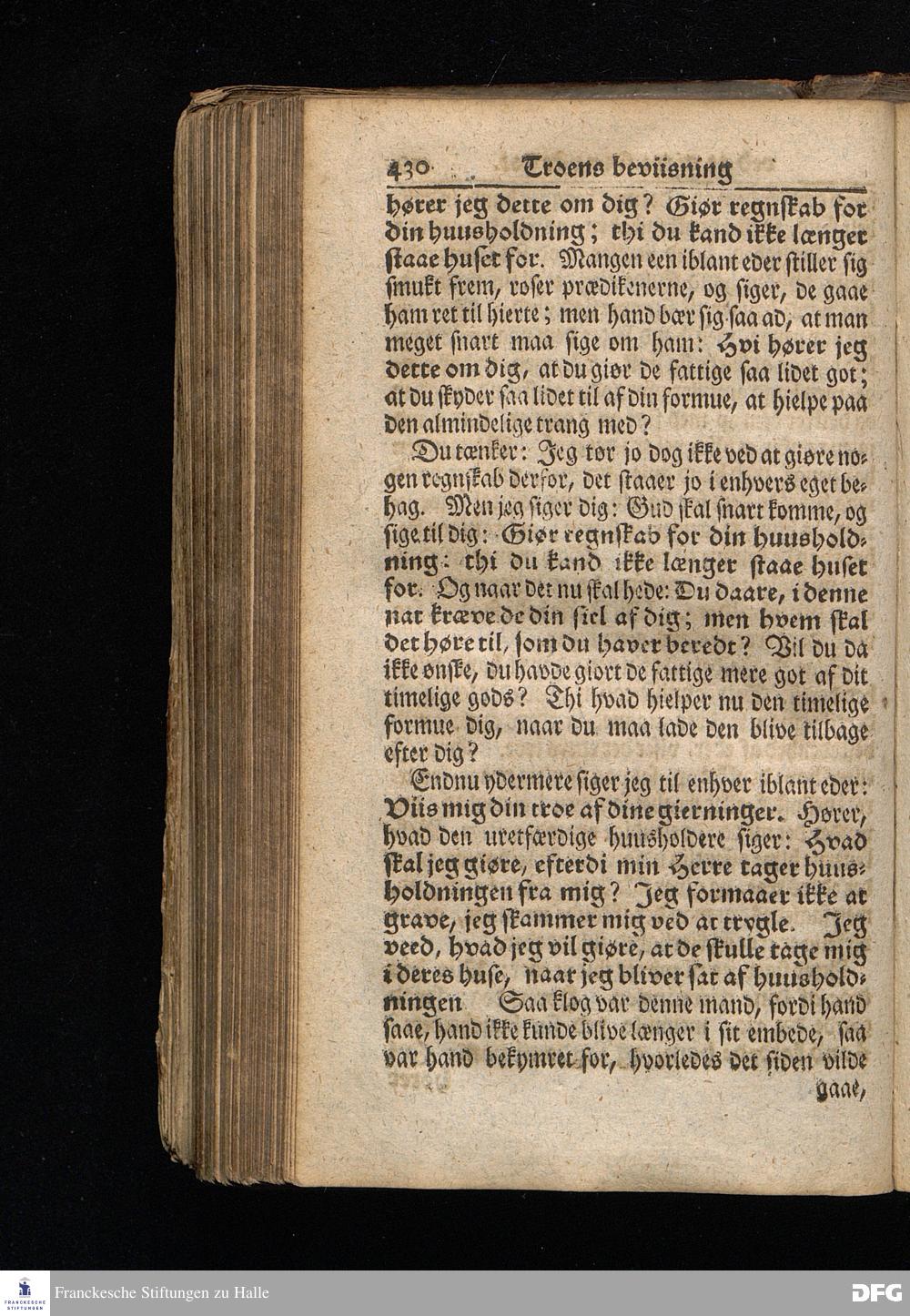 August Hermann Franckens, S. Theol. Prof. & Past. til S. Ulrich i Halle, og Gymnasii Scholarchæ, Haand=Postill, Eller Korte Prædikener Paa Søndage og Hell: Dage, Hvorudi Fornemmelig gives fornøden Opvækkelse og Anviisning til den sande, levende, kraftige, og i gode frugter sig bevisende Troe; Med Fortale og Register forsynede. Af det Tydske i det Danske Sprog oversatte, og til Trykken befordrede. Med Et Tilleg over de i Dannemark brugelige Texter, som af Auctore ey vare forklarede. KJØBENHAVN, Udi det Kongel. Wäysen=Huses Bogtrykkerie, og paa dets Forlag. Trykt af Gottmann Friderich Kisel. Aar 1752