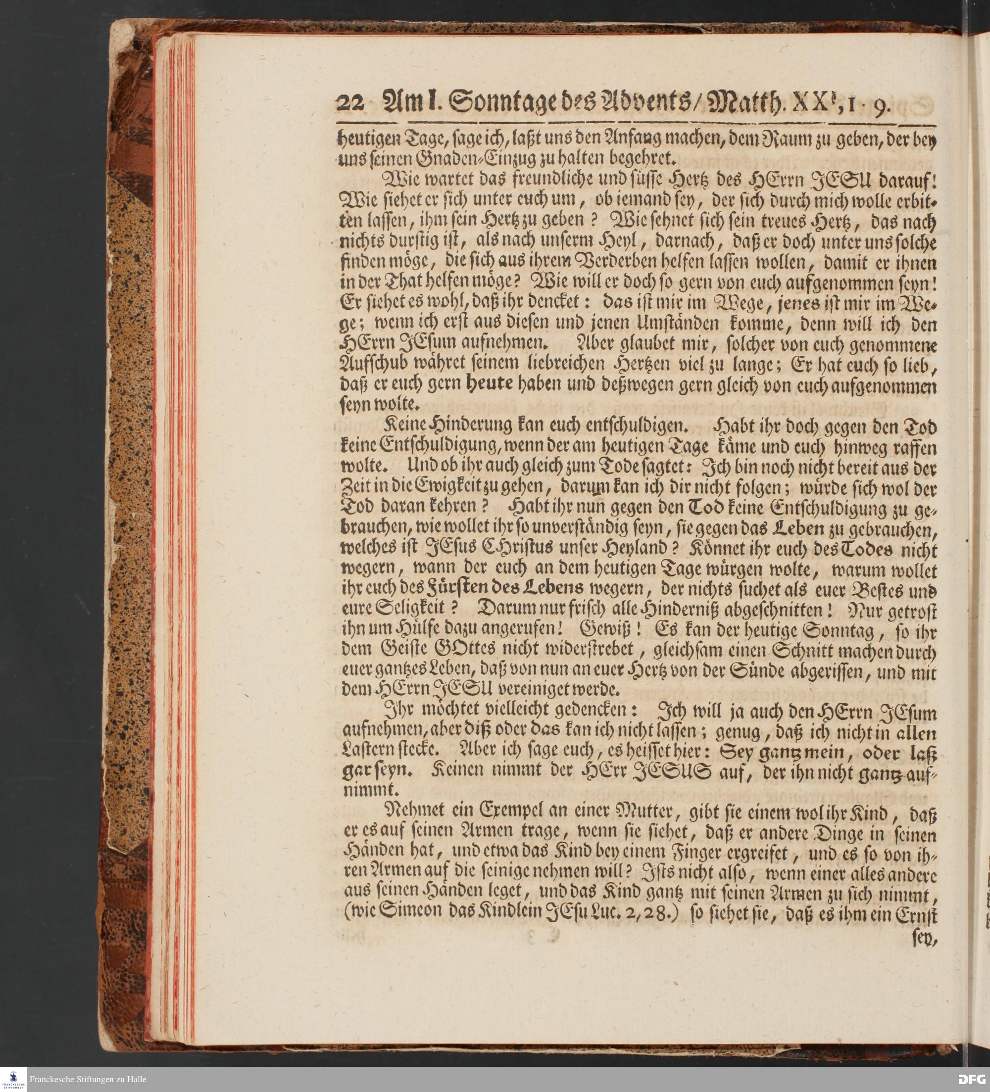 August Hermann Franckens, S.Theol.Prof.und Past. Sonn= und Fest=Tags=Predigten / Welche Theils in Halle, theils an verschiedenen auswärtigen Oertern, von wichtigen und auserlesenen Materien gehalten worden, Nebst Vorbereitung auf die hohen Feste und nützlichen Registern. Dritte Auflage. HALLE, gedruckt und verlegt im Wäysen=Hause MDCCXL. Mit Königl.Preuß.und Churfl.Brandenb.Privileg.