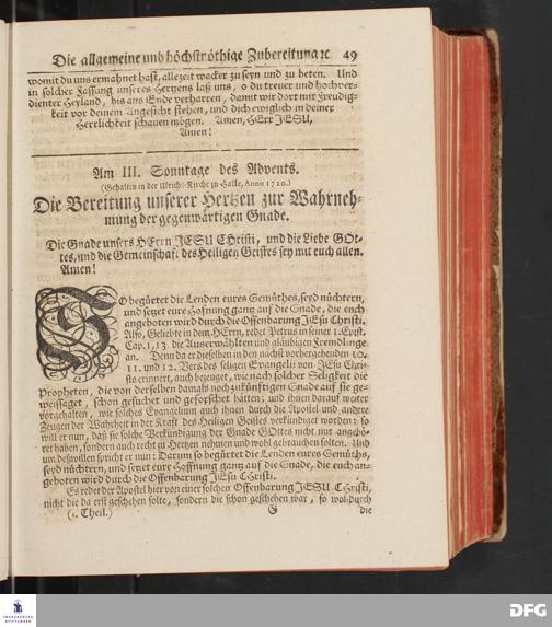 August Hermann Franckens, S.Theol.Prof.und Past. Sonn= und Fest=Tags=Predigten / Welche Theils in Halle, theils an verschiedenen auswärtigen Oertern, von wichtigen und auserlesenen Materien gehalten worden, Nebst Vorbereitung auf die hohen Feste und nützlichen Registern. Dritte Auflage. HALLE, gedruckt und verlegt im Wäysen=Hause MDCCXL. Mit Königl.Preuß.und Churfl.Brandenb.Privileg.