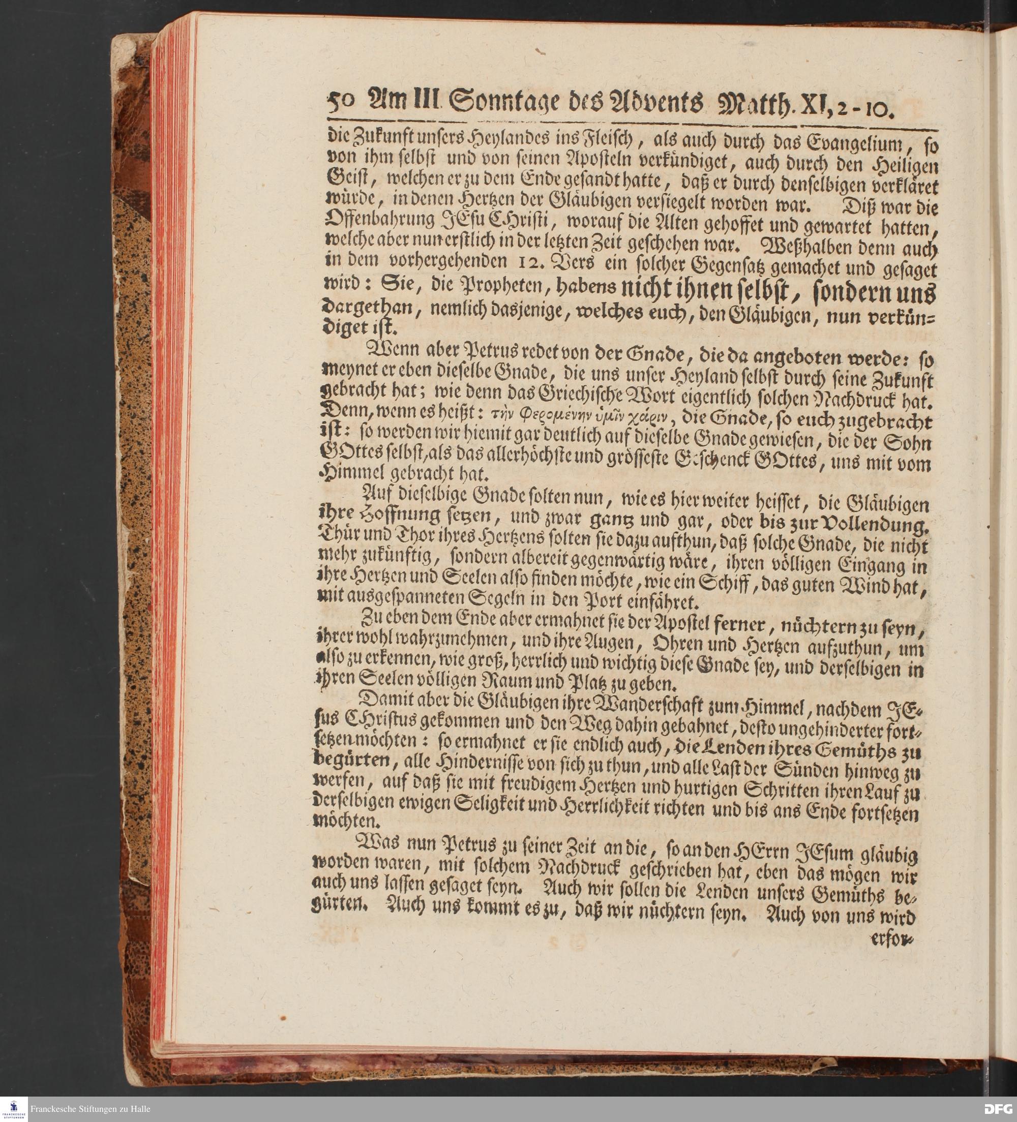 August Hermann Franckens, S.Theol.Prof.und Past. Sonn= und Fest=Tags=Predigten / Welche Theils in Halle, theils an verschiedenen auswärtigen Oertern, von wichtigen und auserlesenen Materien gehalten worden, Nebst Vorbereitung auf die hohen Feste und nützlichen Registern. Dritte Auflage. HALLE, gedruckt und verlegt im Wäysen=Hause MDCCXL. Mit Königl.Preuß.und Churfl.Brandenb.Privileg.