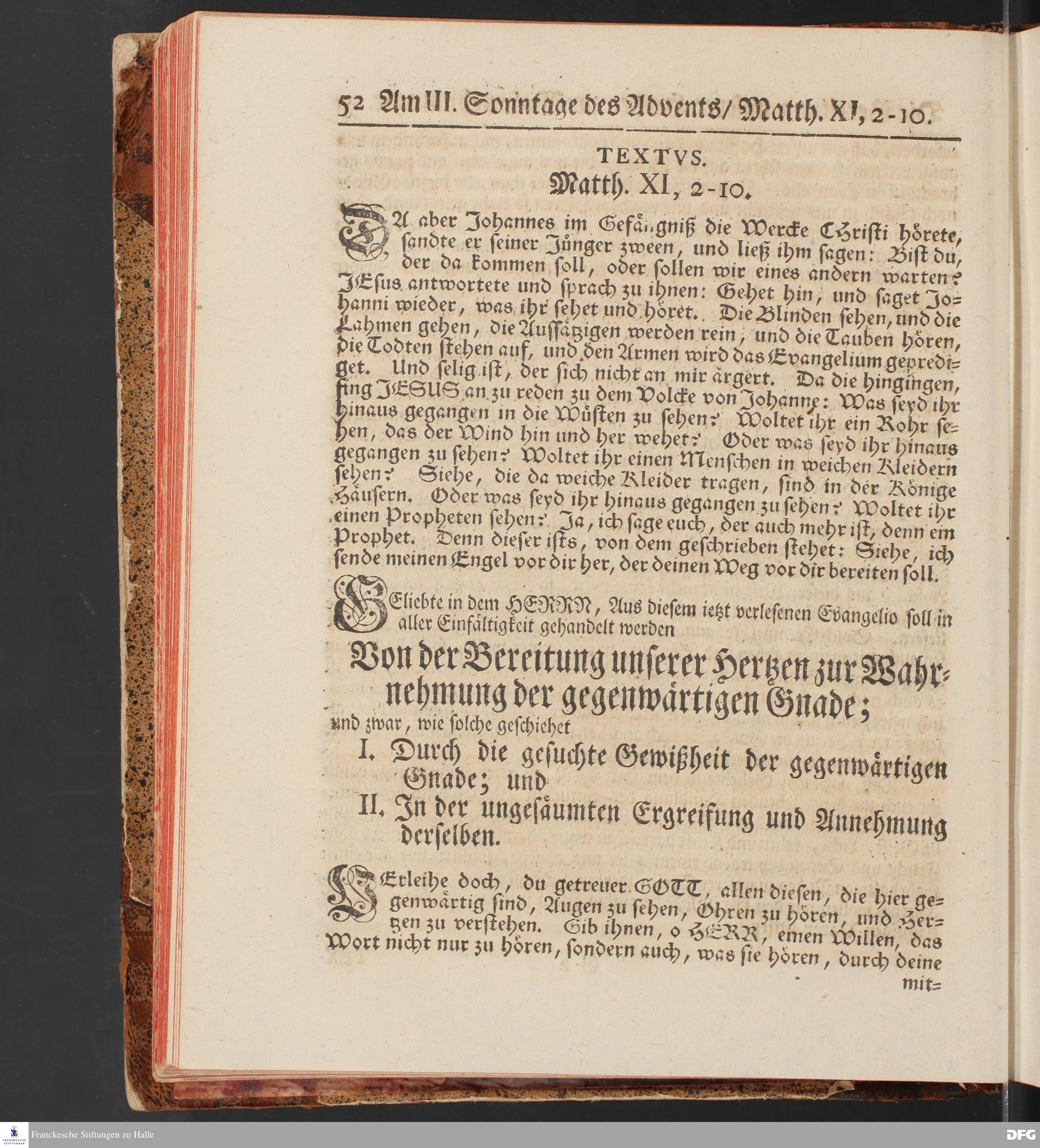 August Hermann Franckens, S.Theol.Prof.und Past. Sonn= und Fest=Tags=Predigten / Welche Theils in Halle, theils an verschiedenen auswärtigen Oertern, von wichtigen und auserlesenen Materien gehalten worden, Nebst Vorbereitung auf die hohen Feste und nützlichen Registern. Dritte Auflage. HALLE, gedruckt und verlegt im Wäysen=Hause MDCCXL. Mit Königl.Preuß.und Churfl.Brandenb.Privileg.