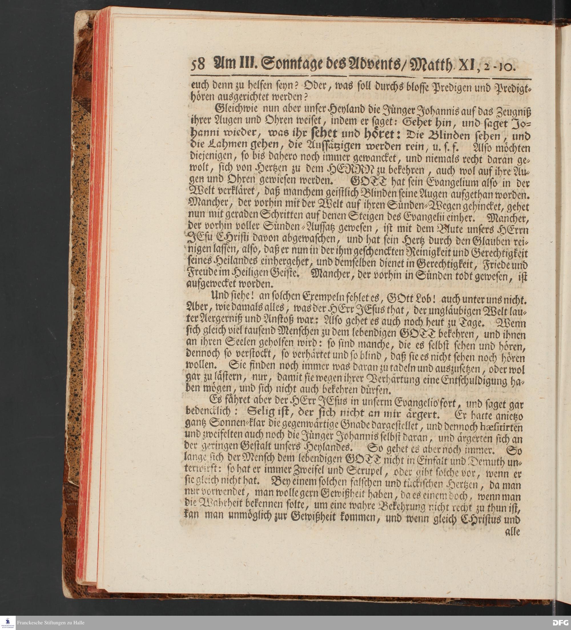 August Hermann Franckens, S.Theol.Prof.und Past. Sonn= und Fest=Tags=Predigten / Welche Theils in Halle, theils an verschiedenen auswärtigen Oertern, von wichtigen und auserlesenen Materien gehalten worden, Nebst Vorbereitung auf die hohen Feste und nützlichen Registern. Dritte Auflage. HALLE, gedruckt und verlegt im Wäysen=Hause MDCCXL. Mit Königl.Preuß.und Churfl.Brandenb.Privileg.