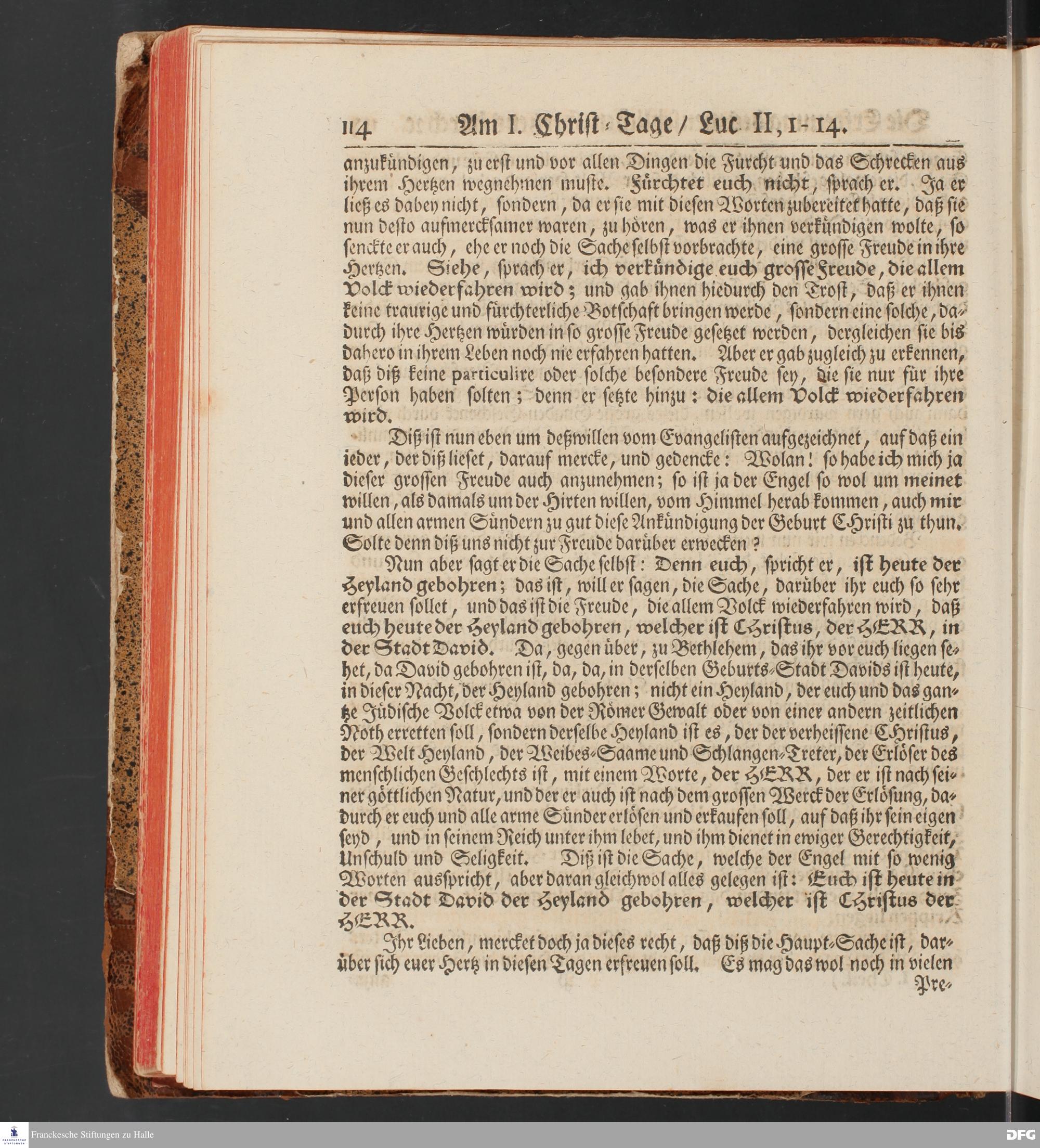 August Hermann Franckens, S.Theol.Prof.und Past. Sonn= und Fest=Tags=Predigten / Welche Theils in Halle, theils an verschiedenen auswärtigen Oertern, von wichtigen und auserlesenen Materien gehalten worden, Nebst Vorbereitung auf die hohen Feste und nützlichen Registern. Dritte Auflage. HALLE, gedruckt und verlegt im Wäysen=Hause MDCCXL. Mit Königl.Preuß.und Churfl.Brandenb.Privileg.