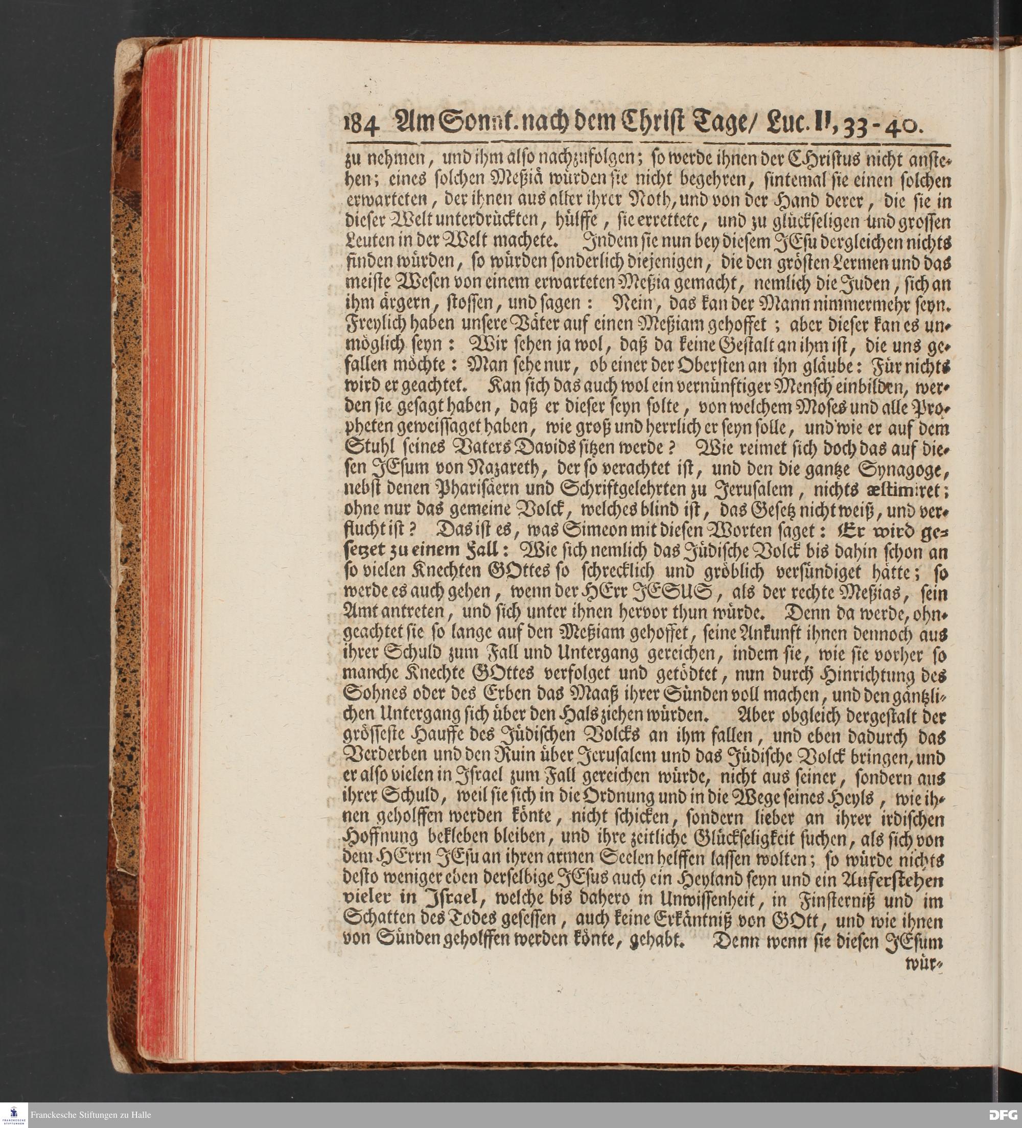 August Hermann Franckens, S.Theol.Prof.und Past. Sonn= und Fest=Tags=Predigten / Welche Theils in Halle, theils an verschiedenen auswärtigen Oertern, von wichtigen und auserlesenen Materien gehalten worden, Nebst Vorbereitung auf die hohen Feste und nützlichen Registern. Dritte Auflage. HALLE, gedruckt und verlegt im Wäysen=Hause MDCCXL. Mit Königl.Preuß.und Churfl.Brandenb.Privileg.