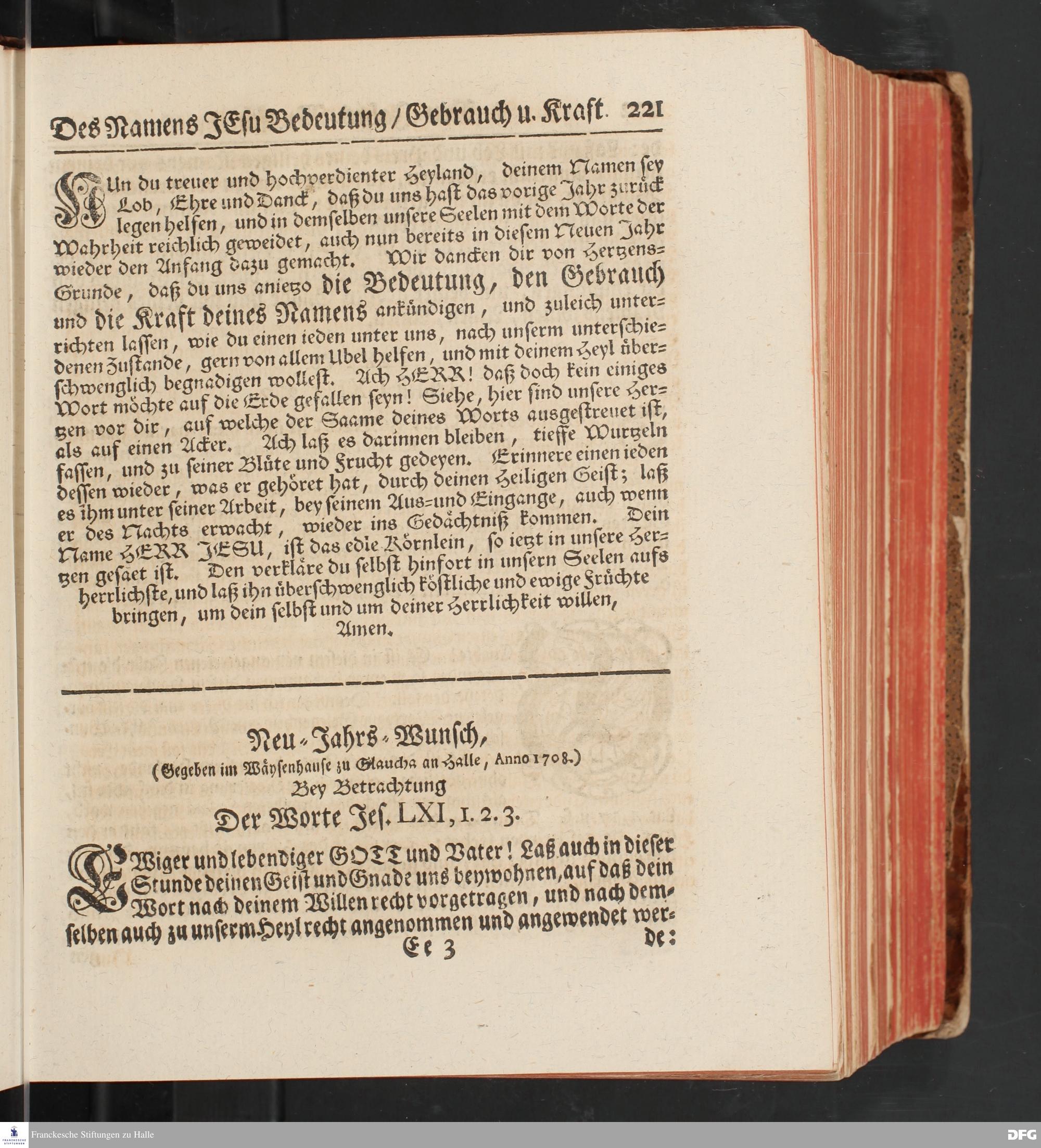 August Hermann Franckens, S.Theol.Prof.und Past. Sonn= und Fest=Tags=Predigten / Welche Theils in Halle, theils an verschiedenen auswärtigen Oertern, von wichtigen und auserlesenen Materien gehalten worden, Nebst Vorbereitung auf die hohen Feste und nützlichen Registern. Dritte Auflage. HALLE, gedruckt und verlegt im Wäysen=Hause MDCCXL. Mit Königl.Preuß.und Churfl.Brandenb.Privileg.