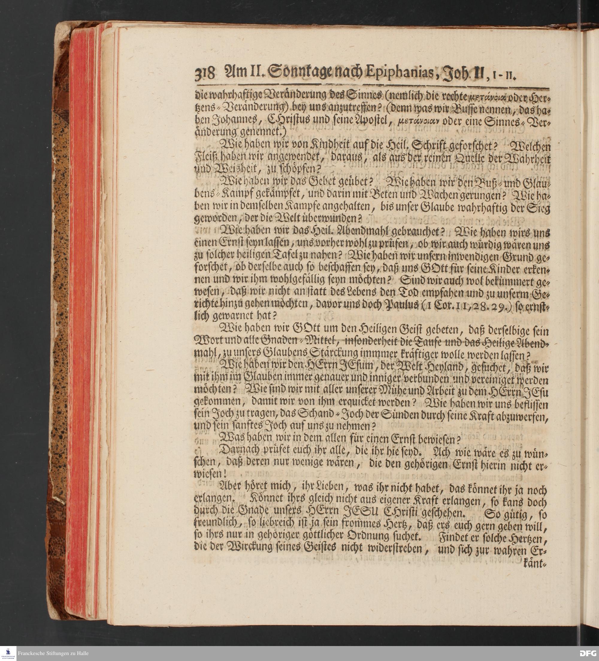 August Hermann Franckens, S.Theol.Prof.und Past. Sonn= und Fest=Tags=Predigten / Welche Theils in Halle, theils an verschiedenen auswärtigen Oertern, von wichtigen und auserlesenen Materien gehalten worden, Nebst Vorbereitung auf die hohen Feste und nützlichen Registern. Dritte Auflage. HALLE, gedruckt und verlegt im Wäysen=Hause MDCCXL. Mit Königl.Preuß.und Churfl.Brandenb.Privileg.