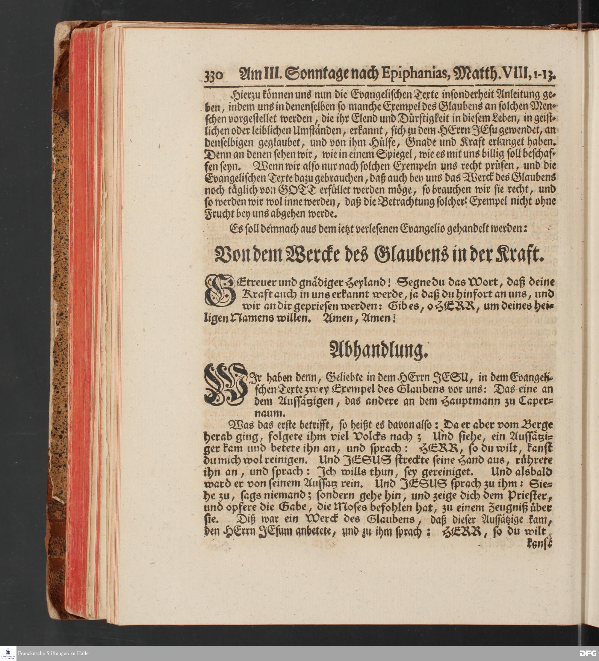 August Hermann Franckens, S.Theol.Prof.und Past. Sonn= und Fest=Tags=Predigten / Welche Theils in Halle, theils an verschiedenen auswärtigen Oertern, von wichtigen und auserlesenen Materien gehalten worden, Nebst Vorbereitung auf die hohen Feste und nützlichen Registern. Dritte Auflage. HALLE, gedruckt und verlegt im Wäysen=Hause MDCCXL. Mit Königl.Preuß.und Churfl.Brandenb.Privileg.