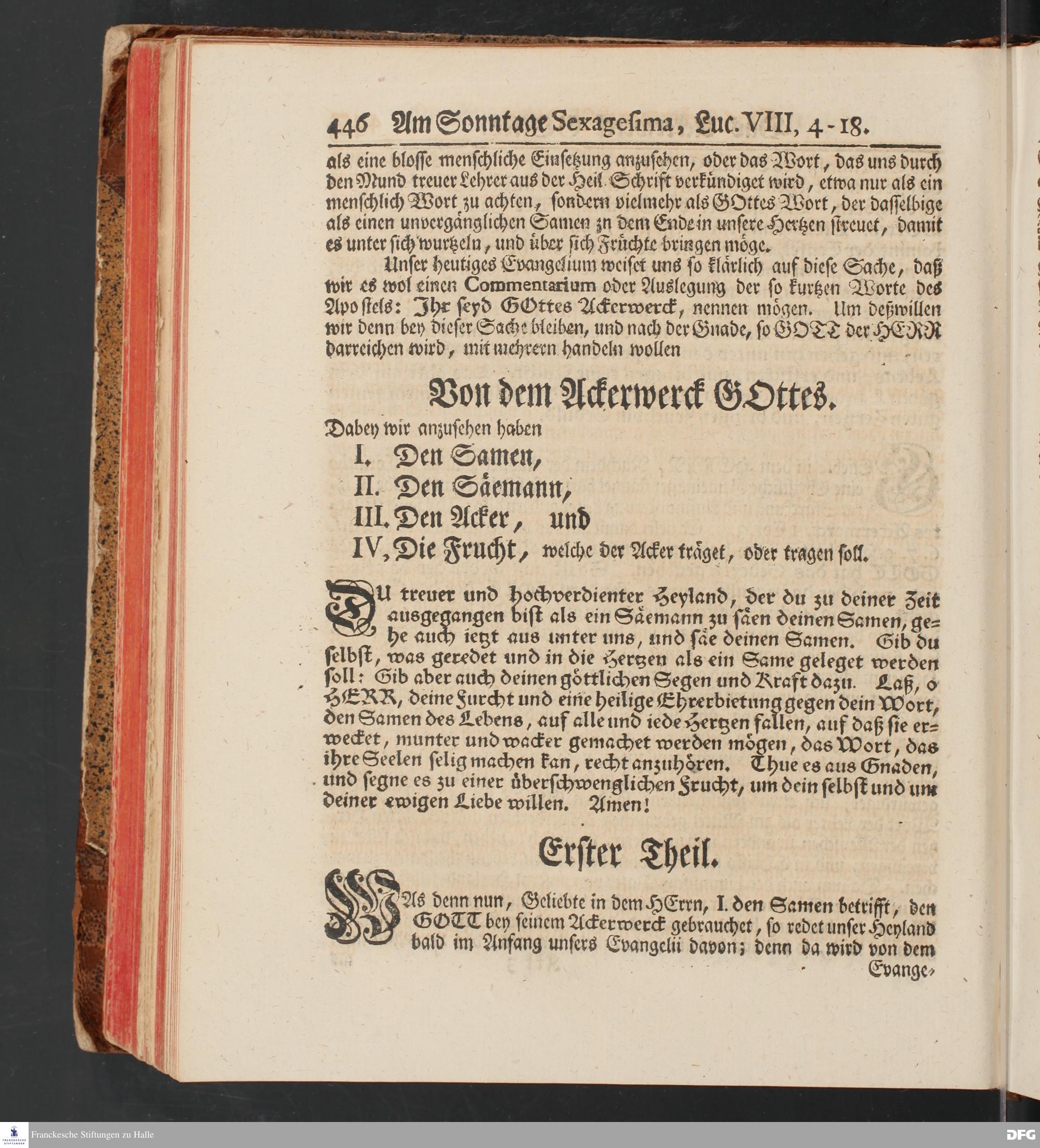August Hermann Franckens, S.Theol.Prof.und Past. Sonn= und Fest=Tags=Predigten / Welche Theils in Halle, theils an verschiedenen auswärtigen Oertern, von wichtigen und auserlesenen Materien gehalten worden, Nebst Vorbereitung auf die hohen Feste und nützlichen Registern. Dritte Auflage. HALLE, gedruckt und verlegt im Wäysen=Hause MDCCXL. Mit Königl.Preuß.und Churfl.Brandenb.Privileg.
