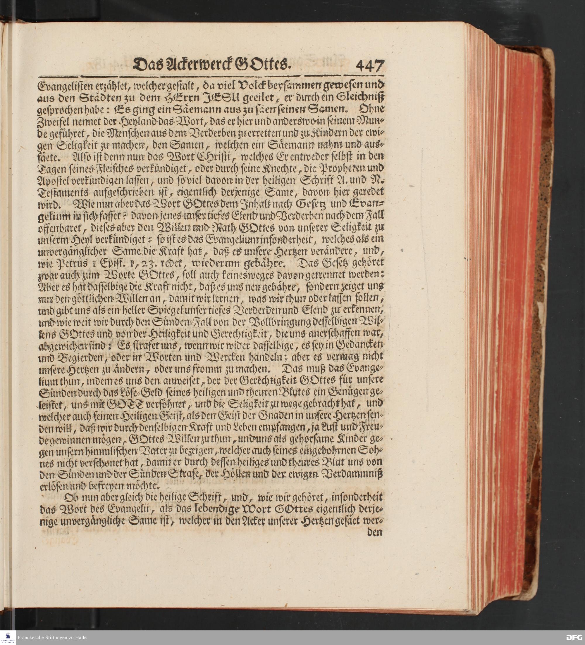 August Hermann Franckens, S.Theol.Prof.und Past. Sonn= und Fest=Tags=Predigten / Welche Theils in Halle, theils an verschiedenen auswärtigen Oertern, von wichtigen und auserlesenen Materien gehalten worden, Nebst Vorbereitung auf die hohen Feste und nützlichen Registern. Dritte Auflage. HALLE, gedruckt und verlegt im Wäysen=Hause MDCCXL. Mit Königl.Preuß.und Churfl.Brandenb.Privileg.