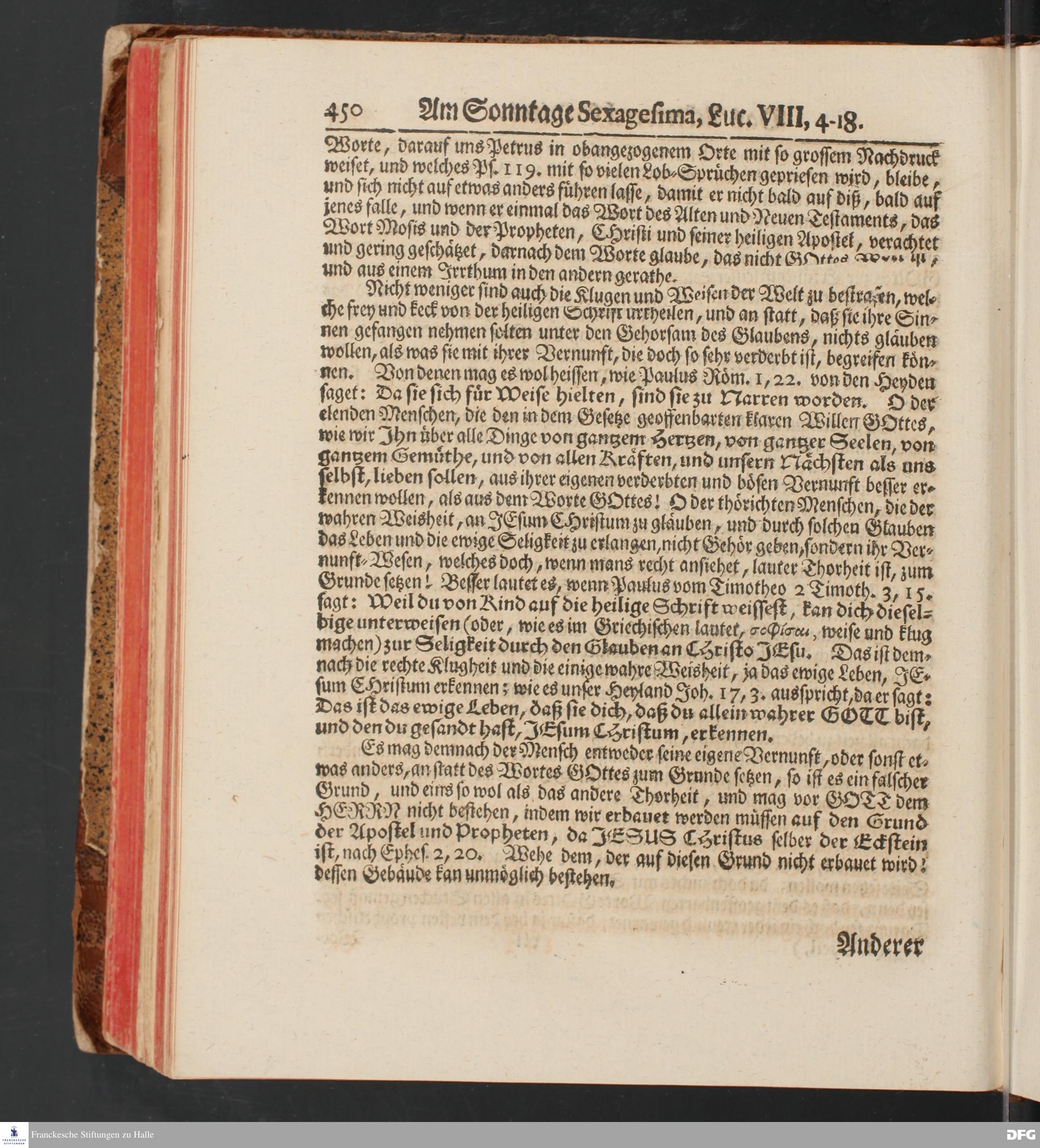August Hermann Franckens, S.Theol.Prof.und Past. Sonn= und Fest=Tags=Predigten / Welche Theils in Halle, theils an verschiedenen auswärtigen Oertern, von wichtigen und auserlesenen Materien gehalten worden, Nebst Vorbereitung auf die hohen Feste und nützlichen Registern. Dritte Auflage. HALLE, gedruckt und verlegt im Wäysen=Hause MDCCXL. Mit Königl.Preuß.und Churfl.Brandenb.Privileg.