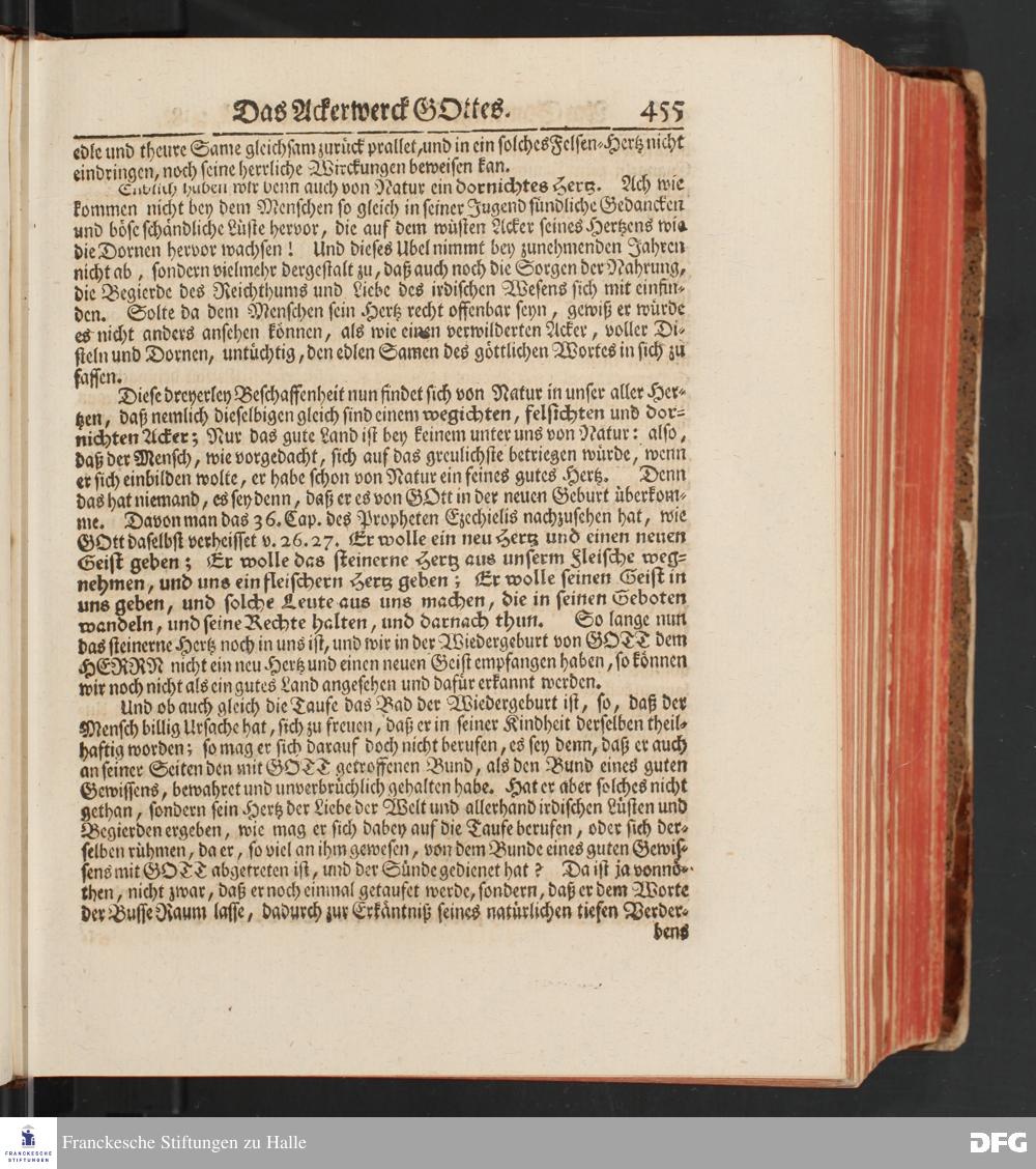 August Hermann Franckens, S.Theol.Prof.und Past. Sonn= und Fest=Tags=Predigten / Welche Theils in Halle, theils an verschiedenen auswärtigen Oertern, von wichtigen und auserlesenen Materien gehalten worden, Nebst Vorbereitung auf die hohen Feste und nützlichen Registern. Dritte Auflage. HALLE, gedruckt und verlegt im Wäysen=Hause MDCCXL. Mit Königl.Preuß.und Churfl.Brandenb.Privileg.