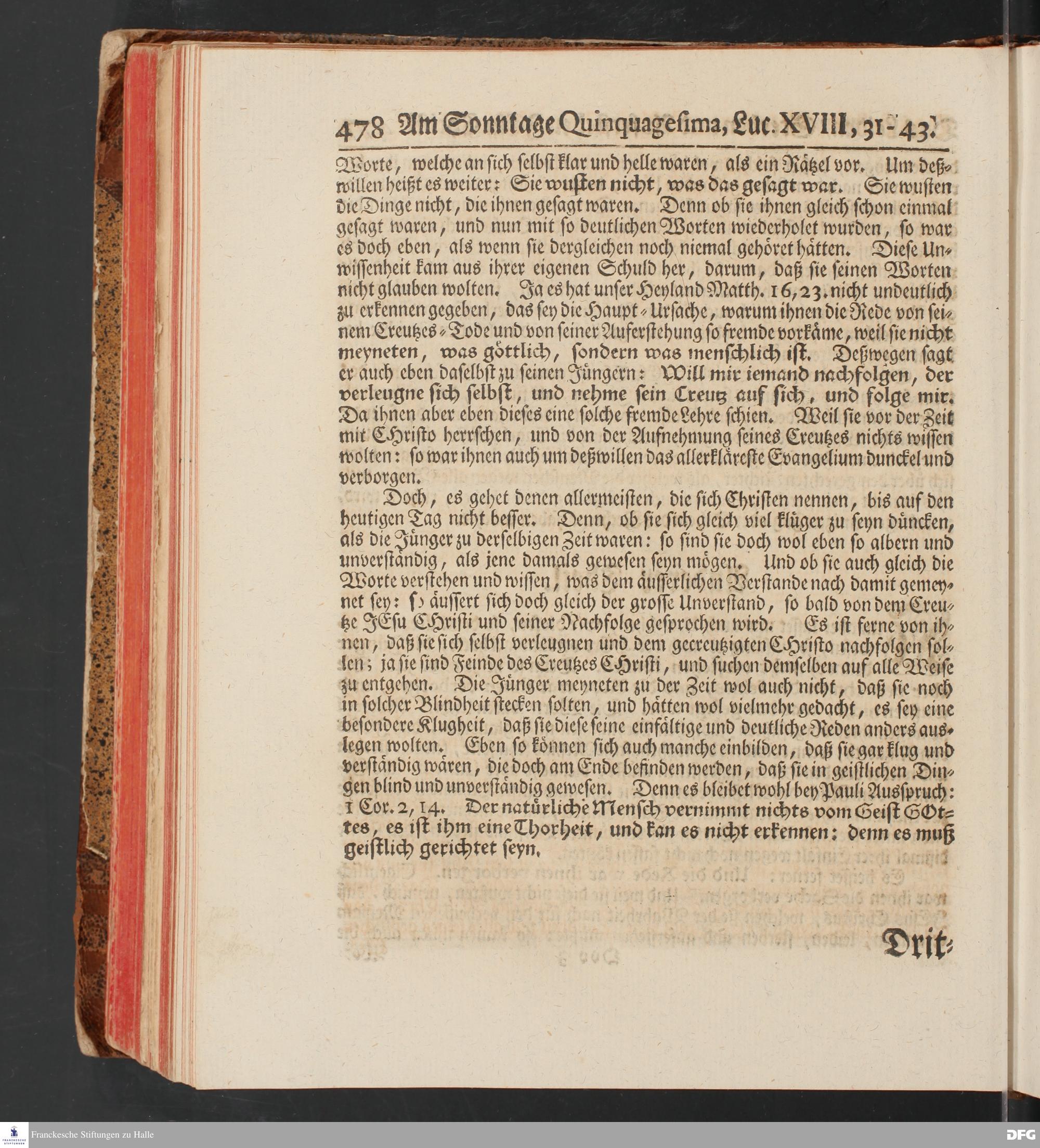 August Hermann Franckens, S.Theol.Prof.und Past. Sonn= und Fest=Tags=Predigten / Welche Theils in Halle, theils an verschiedenen auswärtigen Oertern, von wichtigen und auserlesenen Materien gehalten worden, Nebst Vorbereitung auf die hohen Feste und nützlichen Registern. Dritte Auflage. HALLE, gedruckt und verlegt im Wäysen=Hause MDCCXL. Mit Königl.Preuß.und Churfl.Brandenb.Privileg.