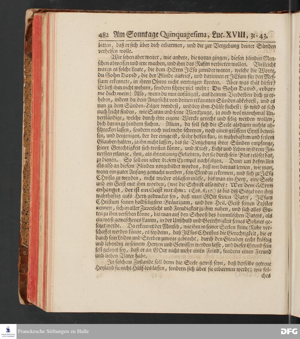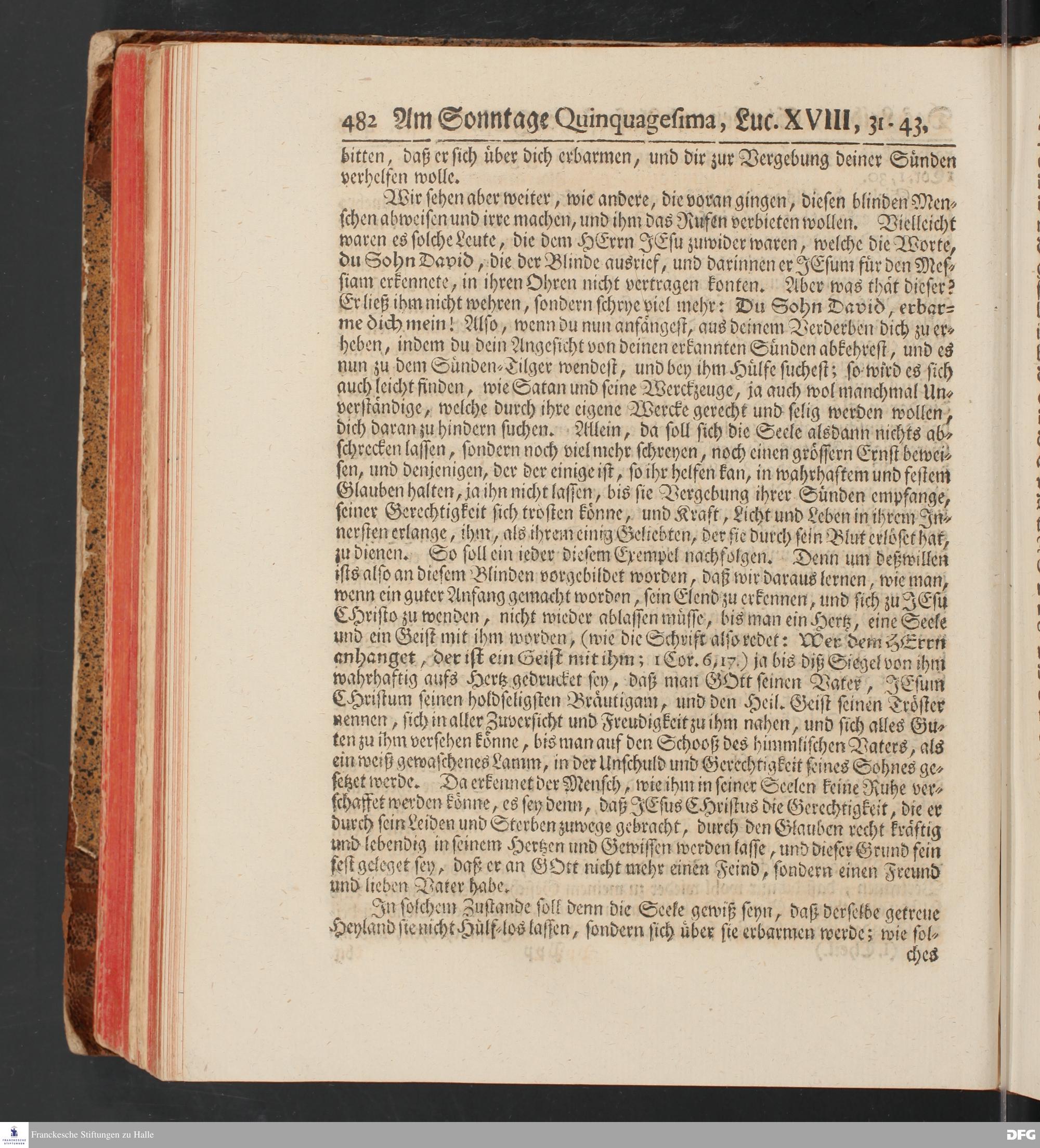 August Hermann Franckens, S.Theol.Prof.und Past. Sonn= und Fest=Tags=Predigten / Welche Theils in Halle, theils an verschiedenen auswärtigen Oertern, von wichtigen und auserlesenen Materien gehalten worden, Nebst Vorbereitung auf die hohen Feste und nützlichen Registern. Dritte Auflage. HALLE, gedruckt und verlegt im Wäysen=Hause MDCCXL. Mit Königl.Preuß.und Churfl.Brandenb.Privileg.