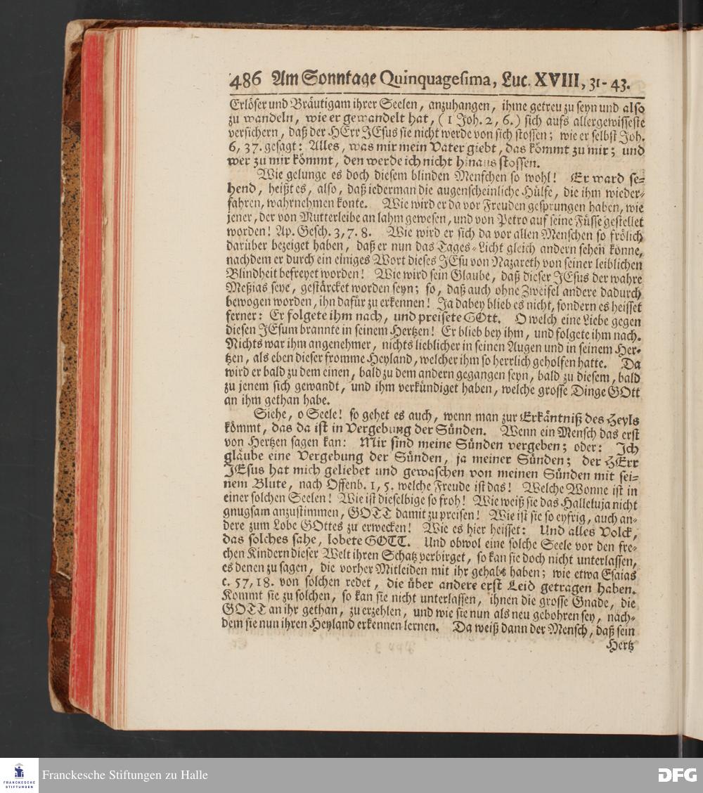August Hermann Franckens, S.Theol.Prof.und Past. Sonn= und Fest=Tags=Predigten / Welche Theils in Halle, theils an verschiedenen auswärtigen Oertern, von wichtigen und auserlesenen Materien gehalten worden, Nebst Vorbereitung auf die hohen Feste und nützlichen Registern. Dritte Auflage. HALLE, gedruckt und verlegt im Wäysen=Hause MDCCXL. Mit Königl.Preuß.und Churfl.Brandenb.Privileg.