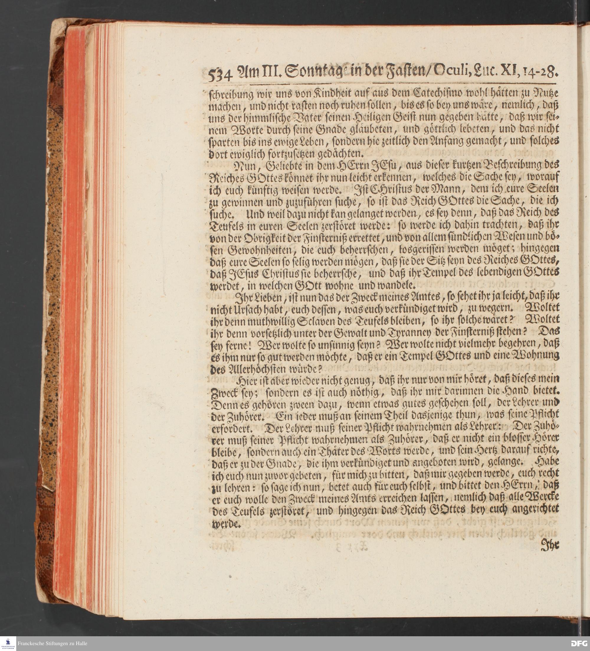 August Hermann Franckens, S.Theol.Prof.und Past. Sonn= und Fest=Tags=Predigten / Welche Theils in Halle, theils an verschiedenen auswärtigen Oertern, von wichtigen und auserlesenen Materien gehalten worden, Nebst Vorbereitung auf die hohen Feste und nützlichen Registern. Dritte Auflage. HALLE, gedruckt und verlegt im Wäysen=Hause MDCCXL. Mit Königl.Preuß.und Churfl.Brandenb.Privileg.