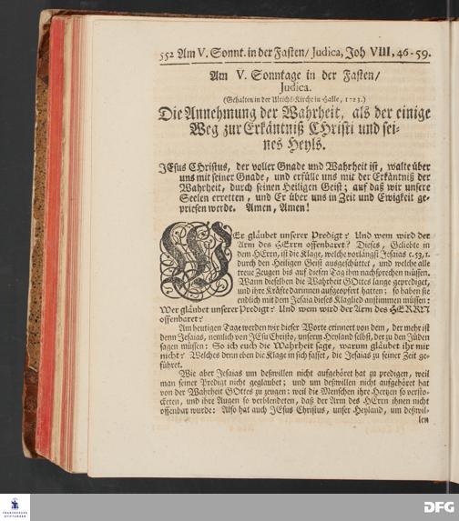 August Hermann Franckens, S.Theol.Prof.und Past. Sonn= und Fest=Tags=Predigten / Welche Theils in Halle, theils an verschiedenen auswärtigen Oertern, von wichtigen und auserlesenen Materien gehalten worden, Nebst Vorbereitung auf die hohen Feste und nützlichen Registern. Dritte Auflage. HALLE, gedruckt und verlegt im Wäysen=Hause MDCCXL. Mit Königl.Preuß.und Churfl.Brandenb.Privileg.