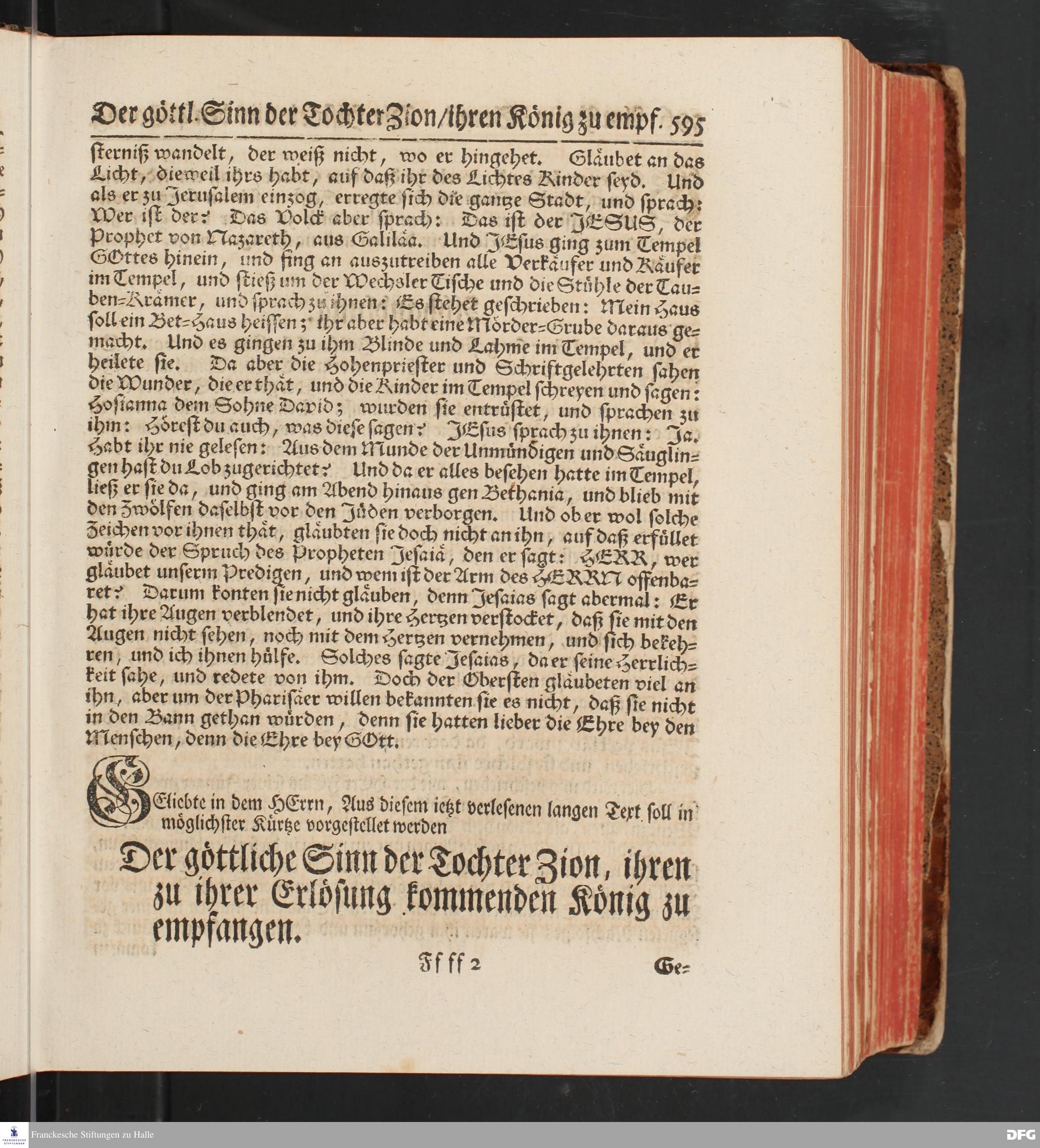 August Hermann Franckens, S.Theol.Prof.und Past. Sonn= und Fest=Tags=Predigten / Welche Theils in Halle, theils an verschiedenen auswärtigen Oertern, von wichtigen und auserlesenen Materien gehalten worden, Nebst Vorbereitung auf die hohen Feste und nützlichen Registern. Dritte Auflage. HALLE, gedruckt und verlegt im Wäysen=Hause MDCCXL. Mit Königl.Preuß.und Churfl.Brandenb.Privileg.