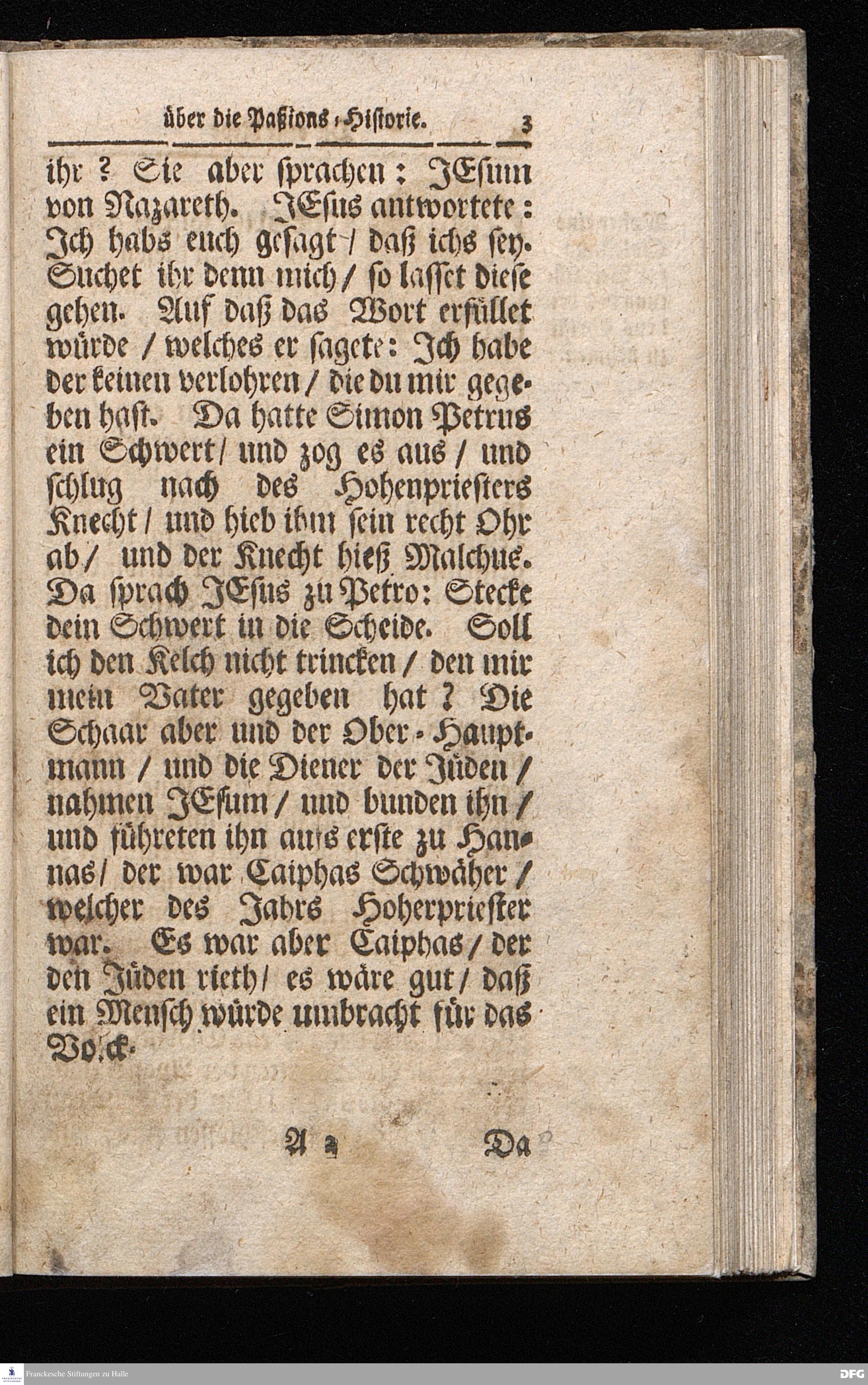 August Hermann Franckens / S.Theol.Prof.& Past.zu S.Ulrich und des Gymnasii Scholarchæ, Oeffentliche Reden über die Paßions=Historie / Wie dieselbe vom Evangelisten Johanne im 18.u.19. Cap. beschrieben ist / gehalten Von Esto mihi bis Ostern 1716. In dem Wäysenhause zu Glaucha an Halle. EDITIO II. HALLE / Gedruckt und verlegt im Wäysenhause MDCCXIX.