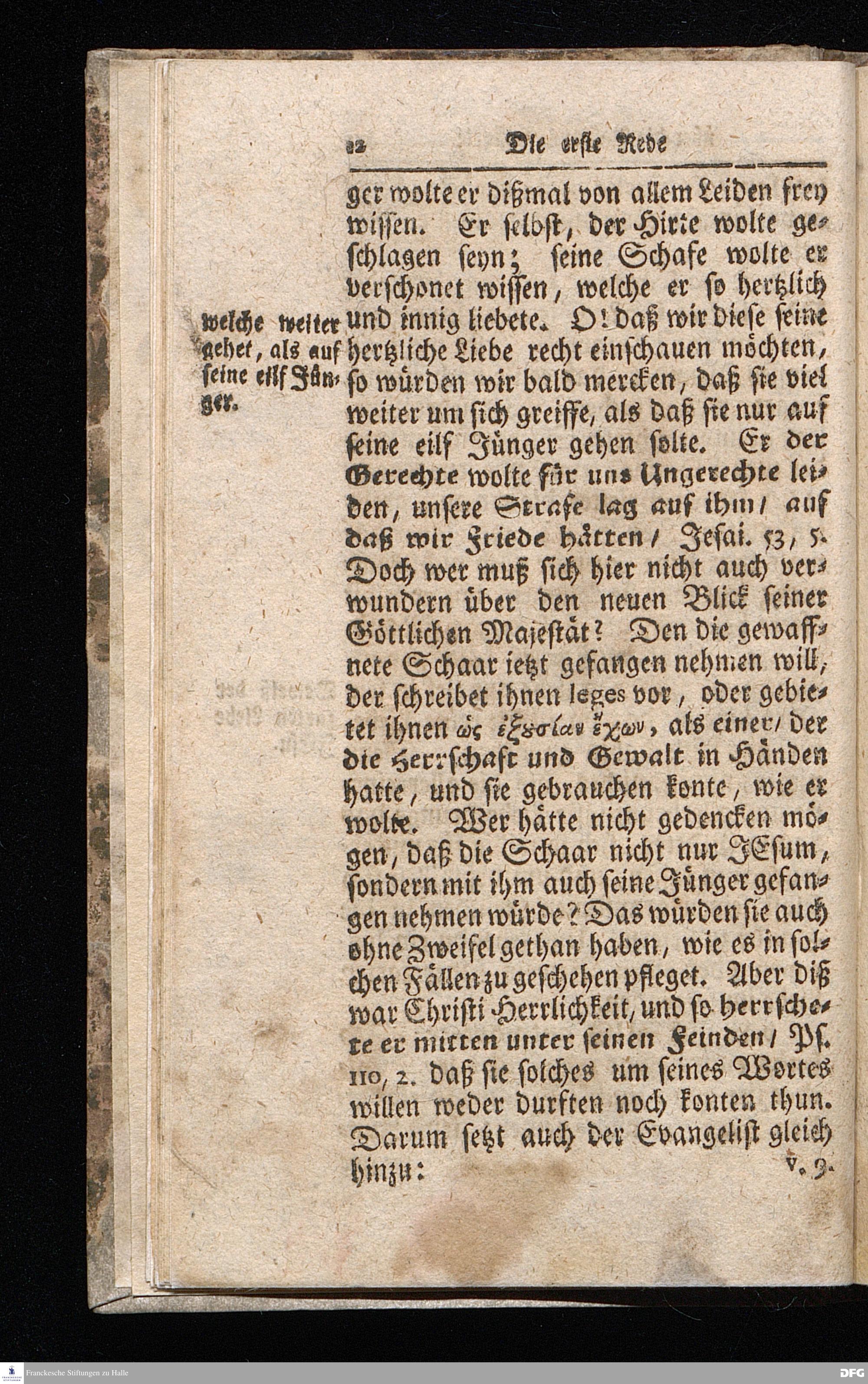 August Hermann Franckens / S.Theol.Prof.& Past.zu S.Ulrich und des Gymnasii Scholarchæ, Oeffentliche Reden über die Paßions=Historie / Wie dieselbe vom Evangelisten Johanne im 18.u.19. Cap. beschrieben ist / gehalten Von Esto mihi bis Ostern 1716. In dem Wäysenhause zu Glaucha an Halle. EDITIO II. HALLE / Gedruckt und verlegt im Wäysenhause MDCCXIX.