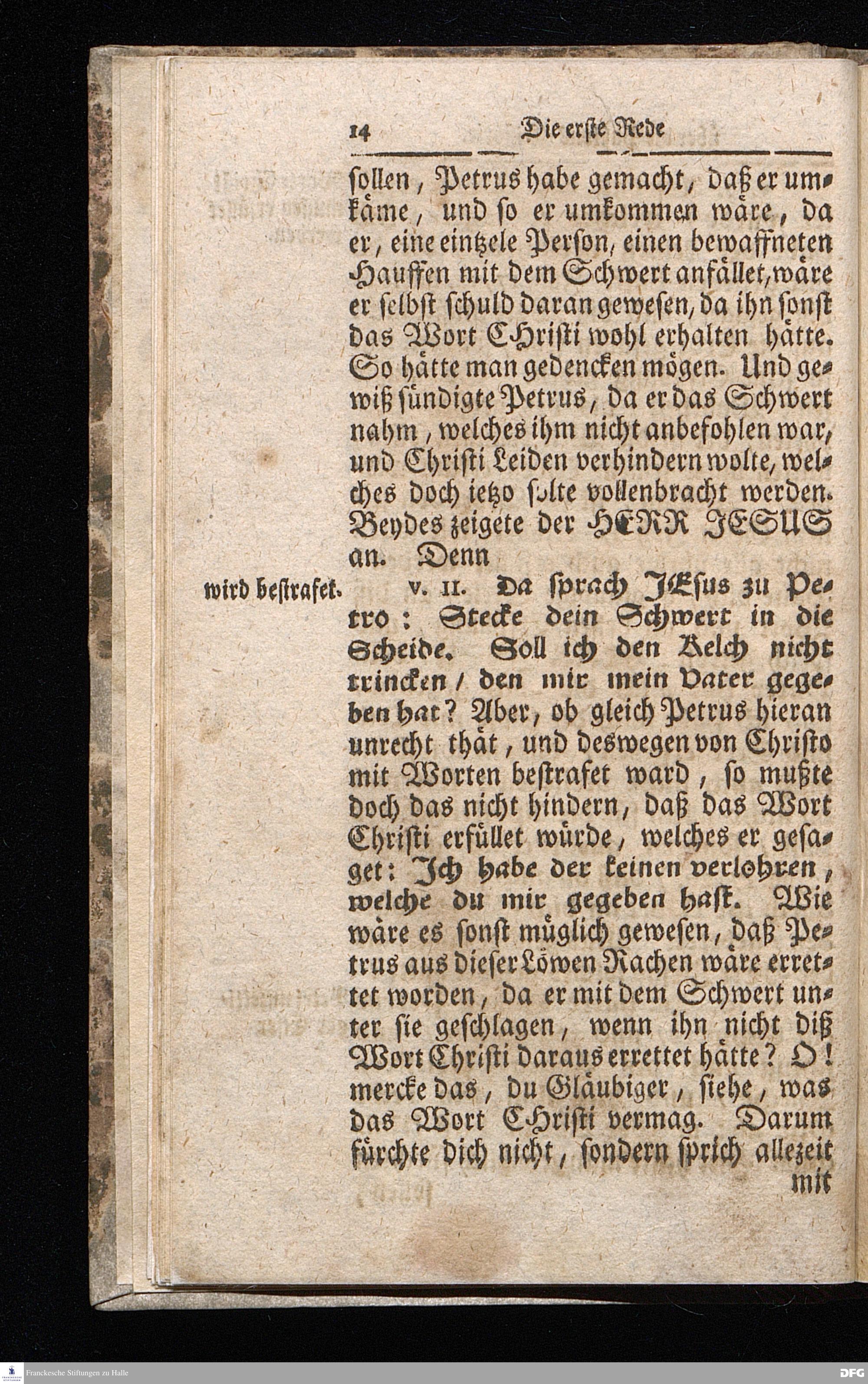 August Hermann Franckens / S.Theol.Prof.& Past.zu S.Ulrich und des Gymnasii Scholarchæ, Oeffentliche Reden über die Paßions=Historie / Wie dieselbe vom Evangelisten Johanne im 18.u.19. Cap. beschrieben ist / gehalten Von Esto mihi bis Ostern 1716. In dem Wäysenhause zu Glaucha an Halle. EDITIO II. HALLE / Gedruckt und verlegt im Wäysenhause MDCCXIX.