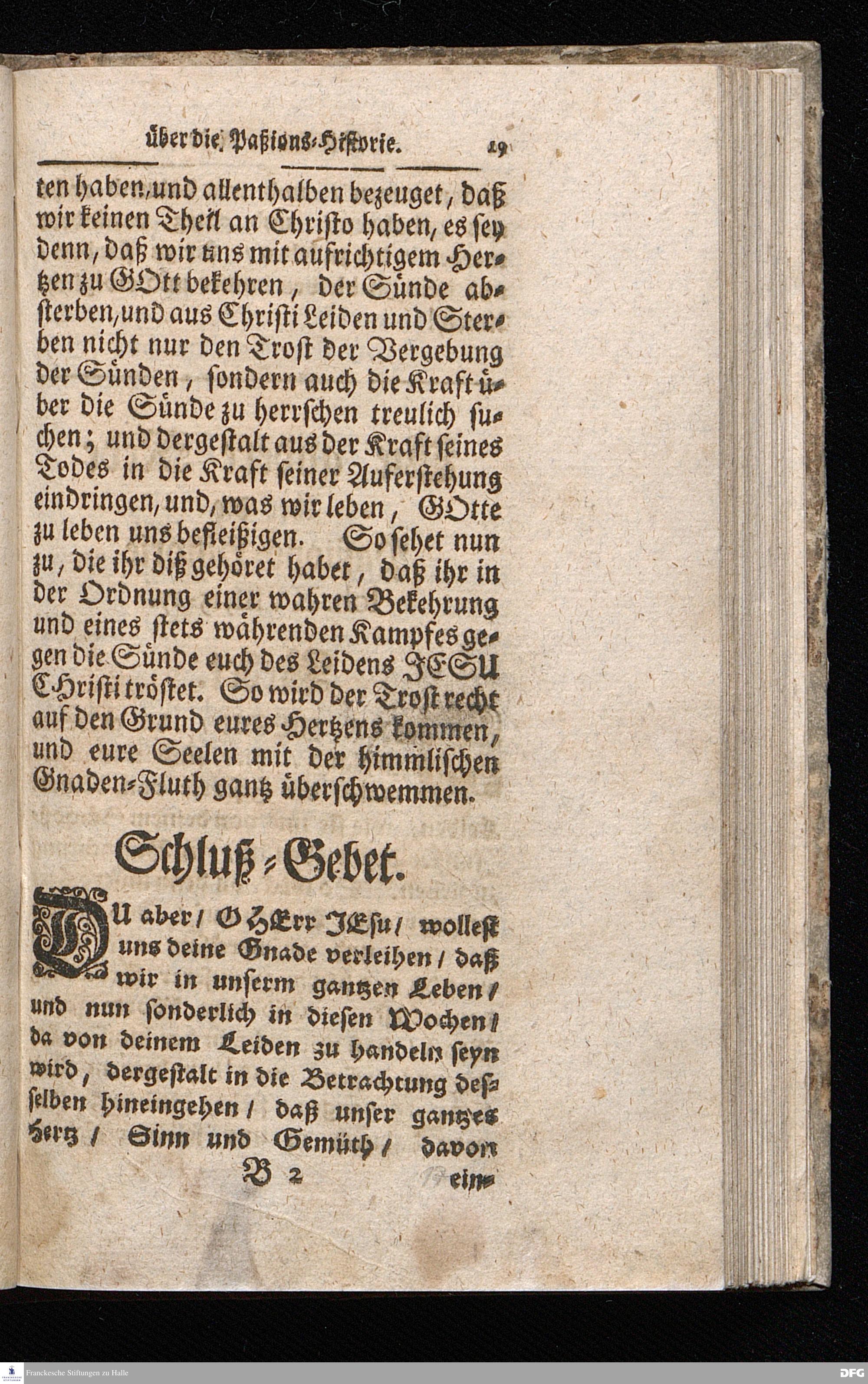 August Hermann Franckens / S.Theol.Prof.& Past.zu S.Ulrich und des Gymnasii Scholarchæ, Oeffentliche Reden über die Paßions=Historie / Wie dieselbe vom Evangelisten Johanne im 18.u.19. Cap. beschrieben ist / gehalten Von Esto mihi bis Ostern 1716. In dem Wäysenhause zu Glaucha an Halle. EDITIO II. HALLE / Gedruckt und verlegt im Wäysenhause MDCCXIX.