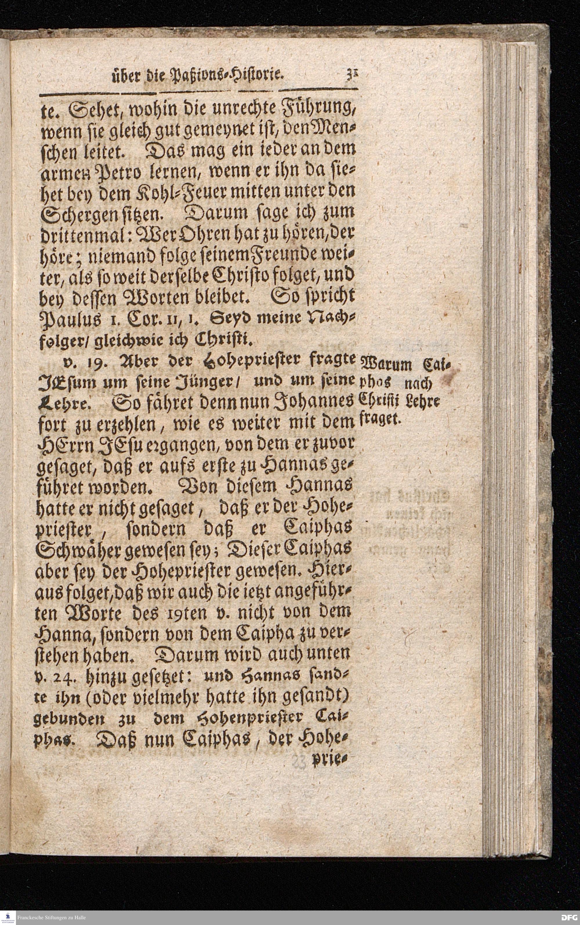 August Hermann Franckens / S.Theol.Prof.& Past.zu S.Ulrich und des Gymnasii Scholarchæ, Oeffentliche Reden über die Paßions=Historie / Wie dieselbe vom Evangelisten Johanne im 18.u.19. Cap. beschrieben ist / gehalten Von Esto mihi bis Ostern 1716. In dem Wäysenhause zu Glaucha an Halle. EDITIO II. HALLE / Gedruckt und verlegt im Wäysenhause MDCCXIX.