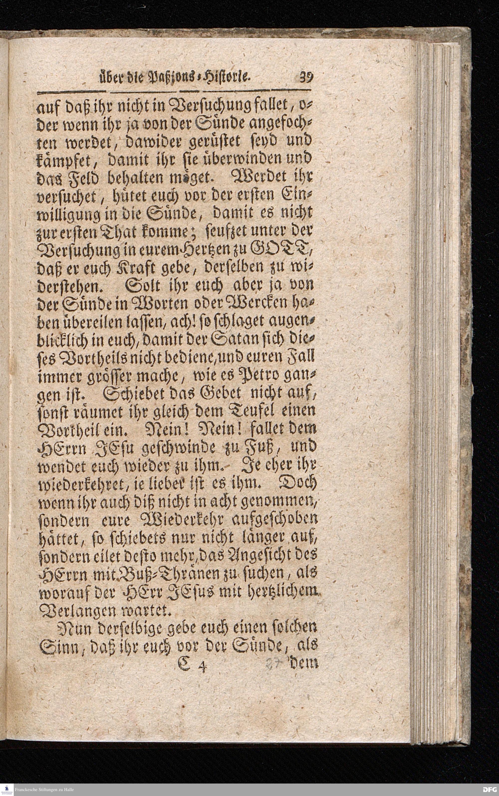 August Hermann Franckens / S.Theol.Prof.& Past.zu S.Ulrich und des Gymnasii Scholarchæ, Oeffentliche Reden über die Paßions=Historie / Wie dieselbe vom Evangelisten Johanne im 18.u.19. Cap. beschrieben ist / gehalten Von Esto mihi bis Ostern 1716. In dem Wäysenhause zu Glaucha an Halle. EDITIO II. HALLE / Gedruckt und verlegt im Wäysenhause MDCCXIX.