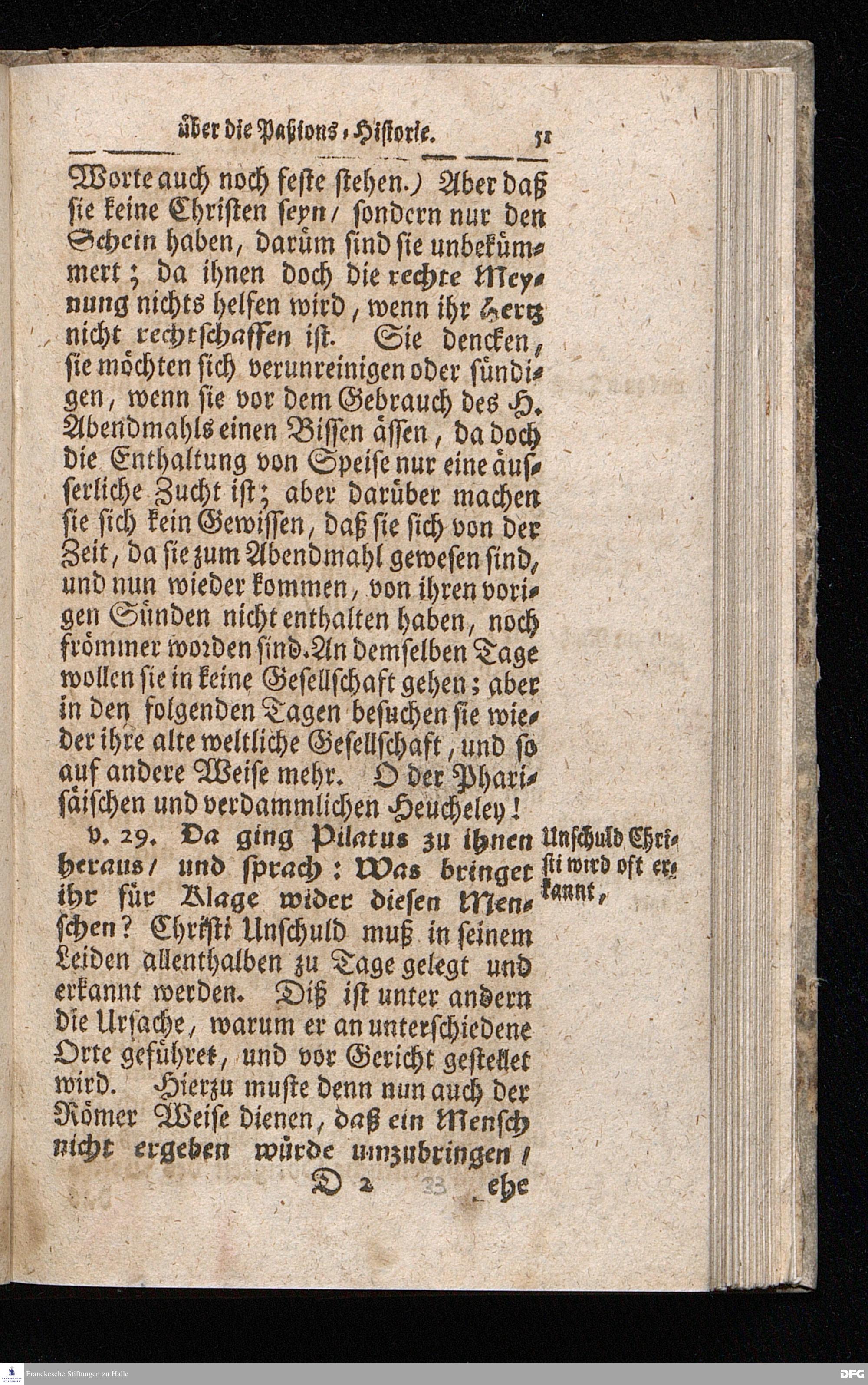 August Hermann Franckens / S.Theol.Prof.& Past.zu S.Ulrich und des Gymnasii Scholarchæ, Oeffentliche Reden über die Paßions=Historie / Wie dieselbe vom Evangelisten Johanne im 18.u.19. Cap. beschrieben ist / gehalten Von Esto mihi bis Ostern 1716. In dem Wäysenhause zu Glaucha an Halle. EDITIO II. HALLE / Gedruckt und verlegt im Wäysenhause MDCCXIX.