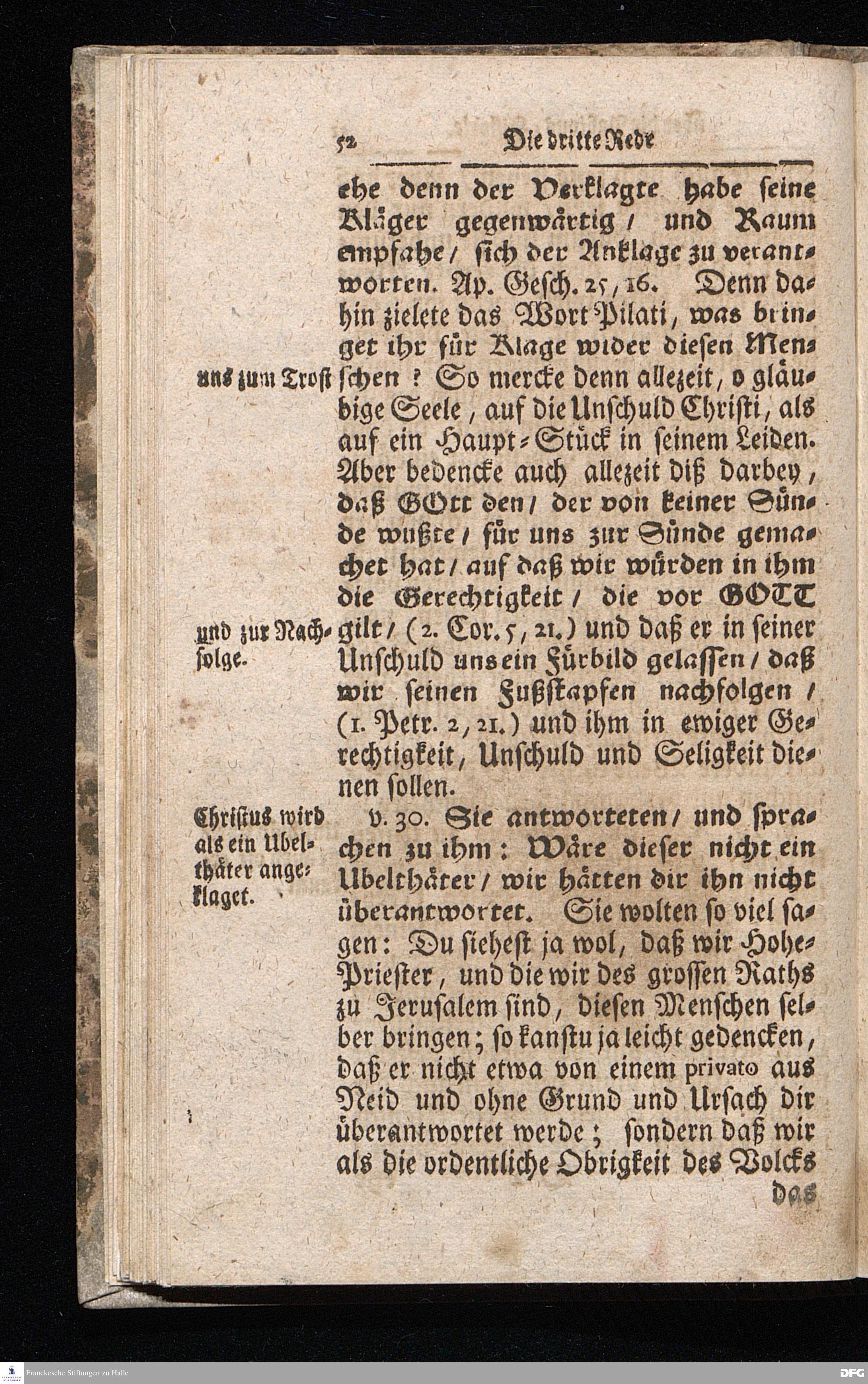 August Hermann Franckens / S.Theol.Prof.& Past.zu S.Ulrich und des Gymnasii Scholarchæ, Oeffentliche Reden über die Paßions=Historie / Wie dieselbe vom Evangelisten Johanne im 18.u.19. Cap. beschrieben ist / gehalten Von Esto mihi bis Ostern 1716. In dem Wäysenhause zu Glaucha an Halle. EDITIO II. HALLE / Gedruckt und verlegt im Wäysenhause MDCCXIX.