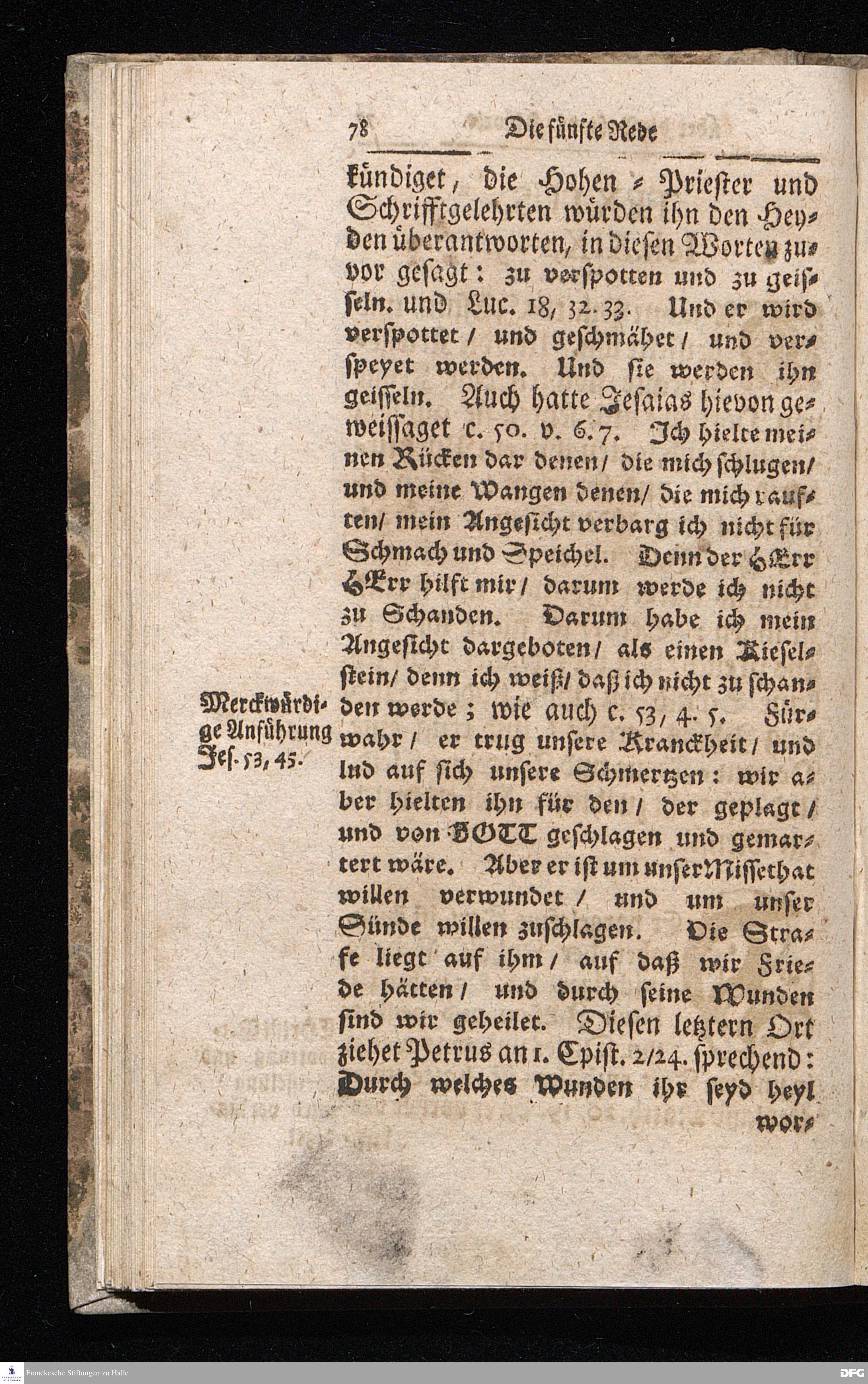 August Hermann Franckens / S.Theol.Prof.& Past.zu S.Ulrich und des Gymnasii Scholarchæ, Oeffentliche Reden über die Paßions=Historie / Wie dieselbe vom Evangelisten Johanne im 18.u.19. Cap. beschrieben ist / gehalten Von Esto mihi bis Ostern 1716. In dem Wäysenhause zu Glaucha an Halle. EDITIO II. HALLE / Gedruckt und verlegt im Wäysenhause MDCCXIX.