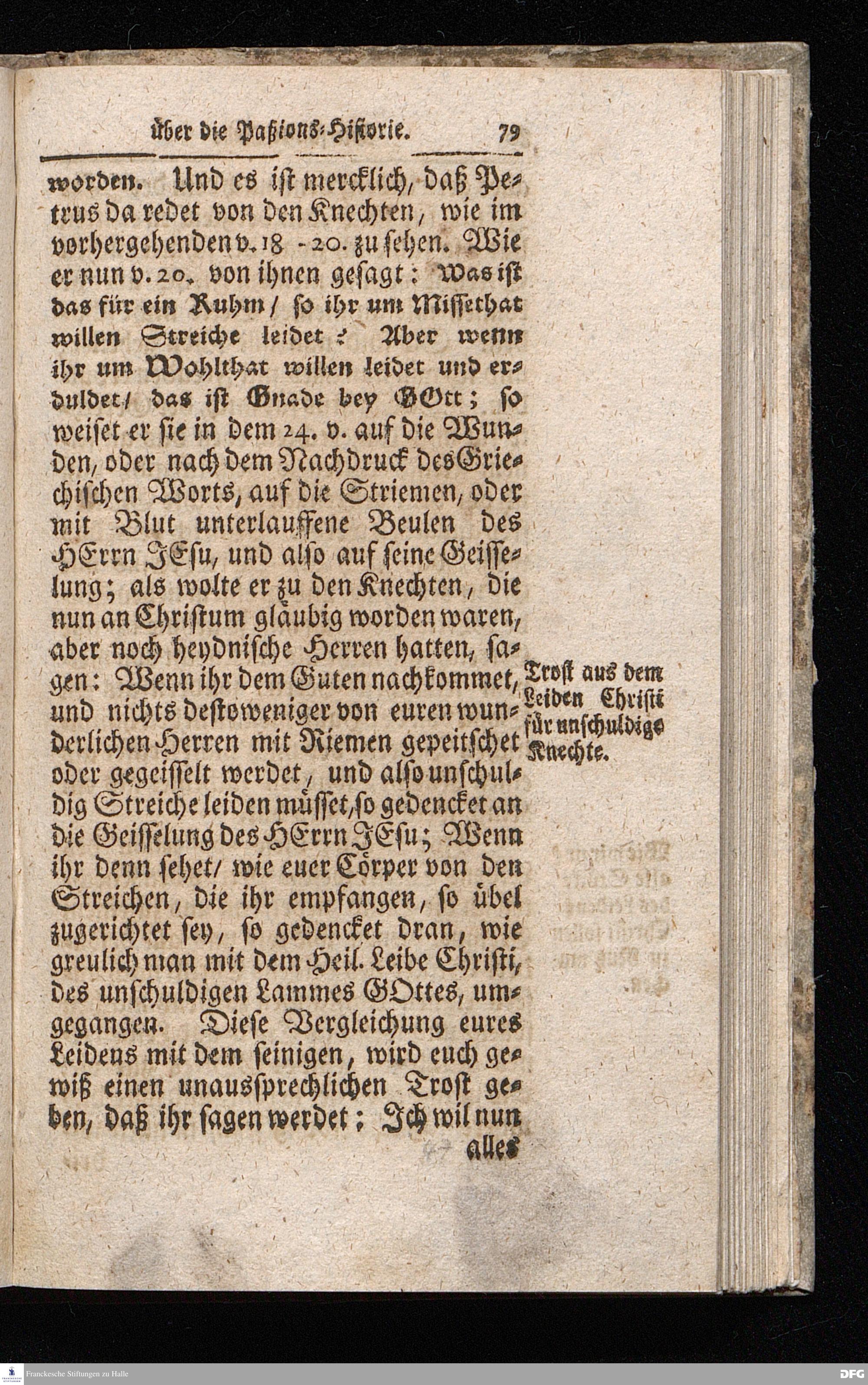 August Hermann Franckens / S.Theol.Prof.& Past.zu S.Ulrich und des Gymnasii Scholarchæ, Oeffentliche Reden über die Paßions=Historie / Wie dieselbe vom Evangelisten Johanne im 18.u.19. Cap. beschrieben ist / gehalten Von Esto mihi bis Ostern 1716. In dem Wäysenhause zu Glaucha an Halle. EDITIO II. HALLE / Gedruckt und verlegt im Wäysenhause MDCCXIX.
