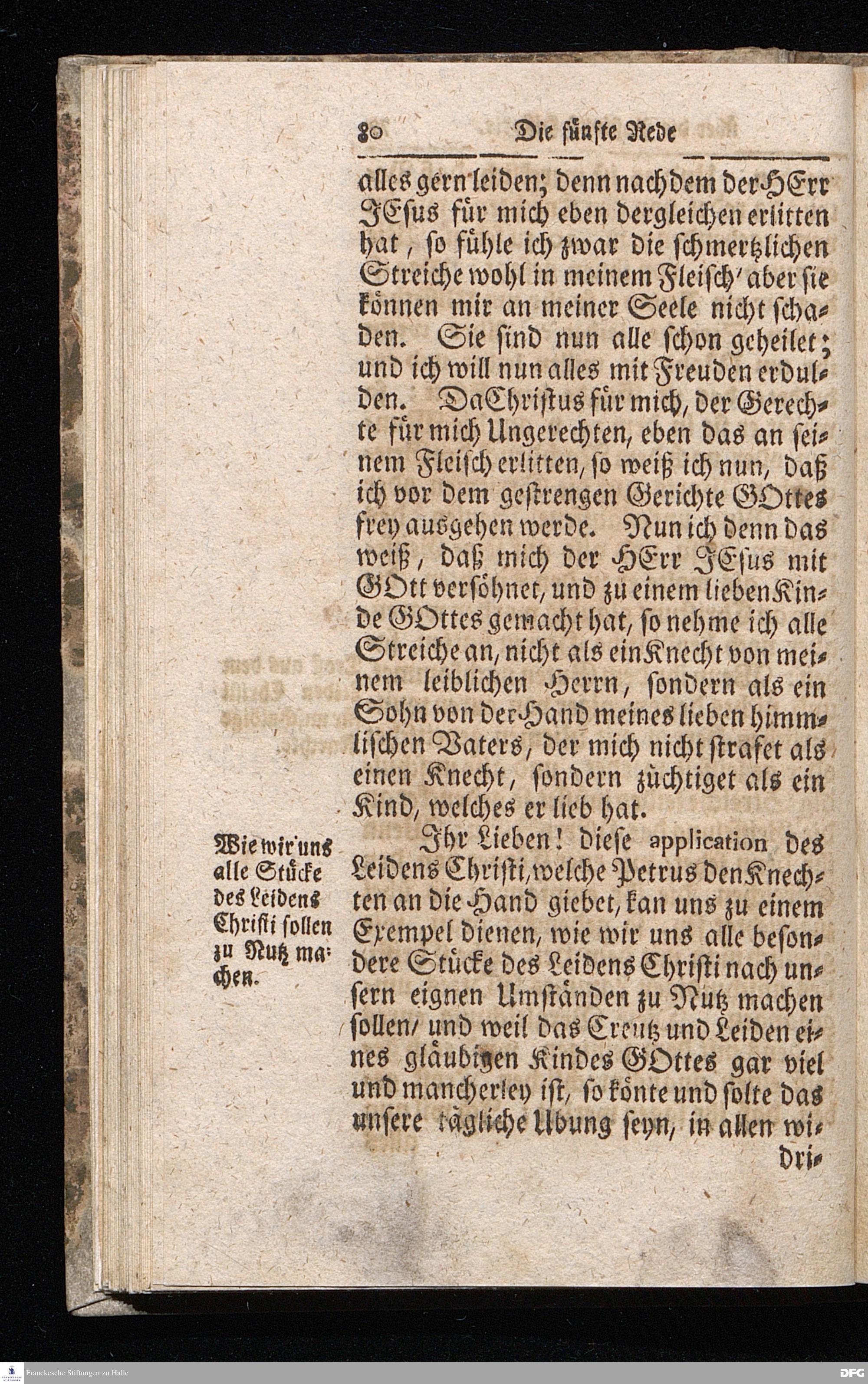 August Hermann Franckens / S.Theol.Prof.& Past.zu S.Ulrich und des Gymnasii Scholarchæ, Oeffentliche Reden über die Paßions=Historie / Wie dieselbe vom Evangelisten Johanne im 18.u.19. Cap. beschrieben ist / gehalten Von Esto mihi bis Ostern 1716. In dem Wäysenhause zu Glaucha an Halle. EDITIO II. HALLE / Gedruckt und verlegt im Wäysenhause MDCCXIX.