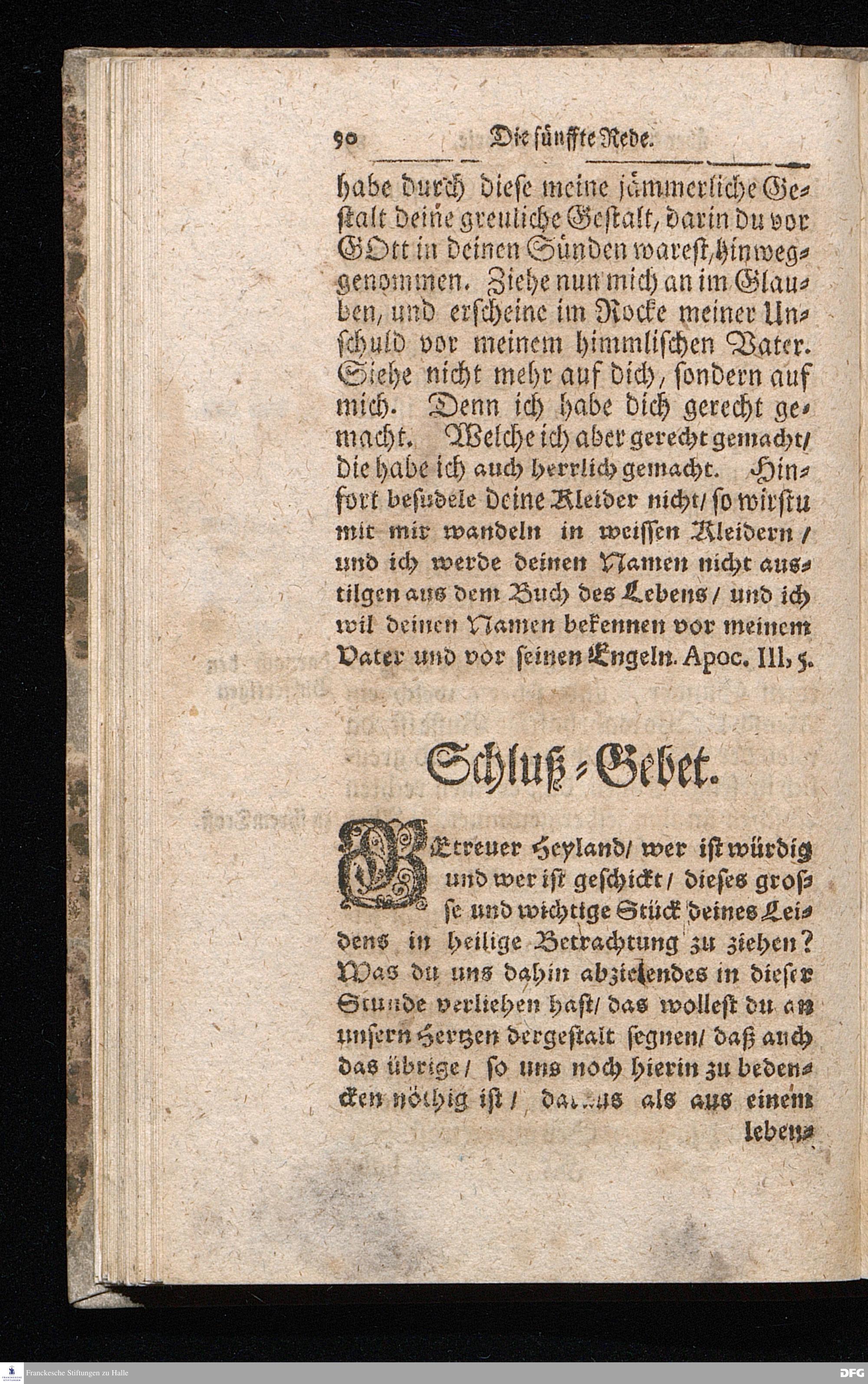 August Hermann Franckens / S.Theol.Prof.& Past.zu S.Ulrich und des Gymnasii Scholarchæ, Oeffentliche Reden über die Paßions=Historie / Wie dieselbe vom Evangelisten Johanne im 18.u.19. Cap. beschrieben ist / gehalten Von Esto mihi bis Ostern 1716. In dem Wäysenhause zu Glaucha an Halle. EDITIO II. HALLE / Gedruckt und verlegt im Wäysenhause MDCCXIX.