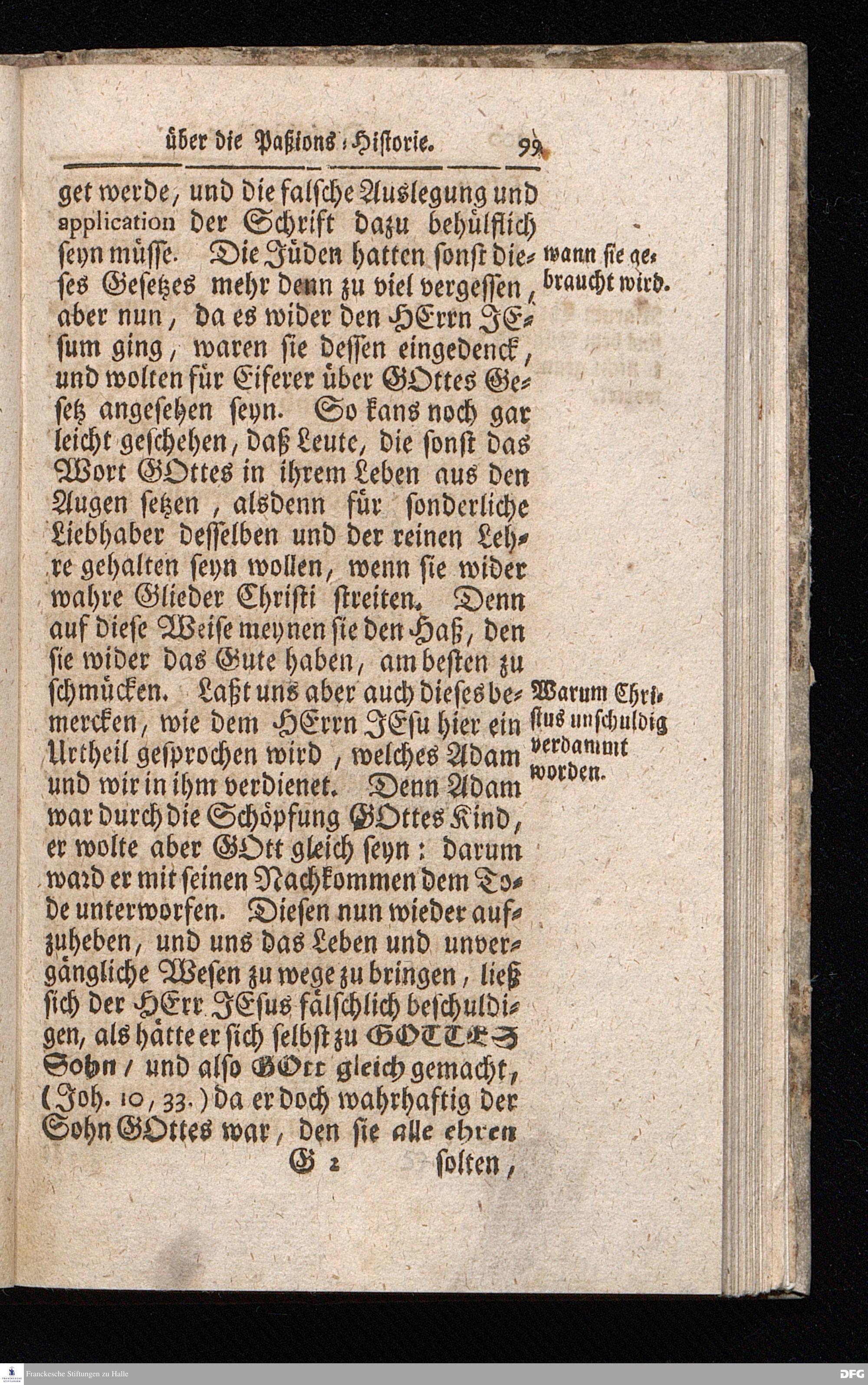August Hermann Franckens / S.Theol.Prof.& Past.zu S.Ulrich und des Gymnasii Scholarchæ, Oeffentliche Reden über die Paßions=Historie / Wie dieselbe vom Evangelisten Johanne im 18.u.19. Cap. beschrieben ist / gehalten Von Esto mihi bis Ostern 1716. In dem Wäysenhause zu Glaucha an Halle. EDITIO II. HALLE / Gedruckt und verlegt im Wäysenhause MDCCXIX.