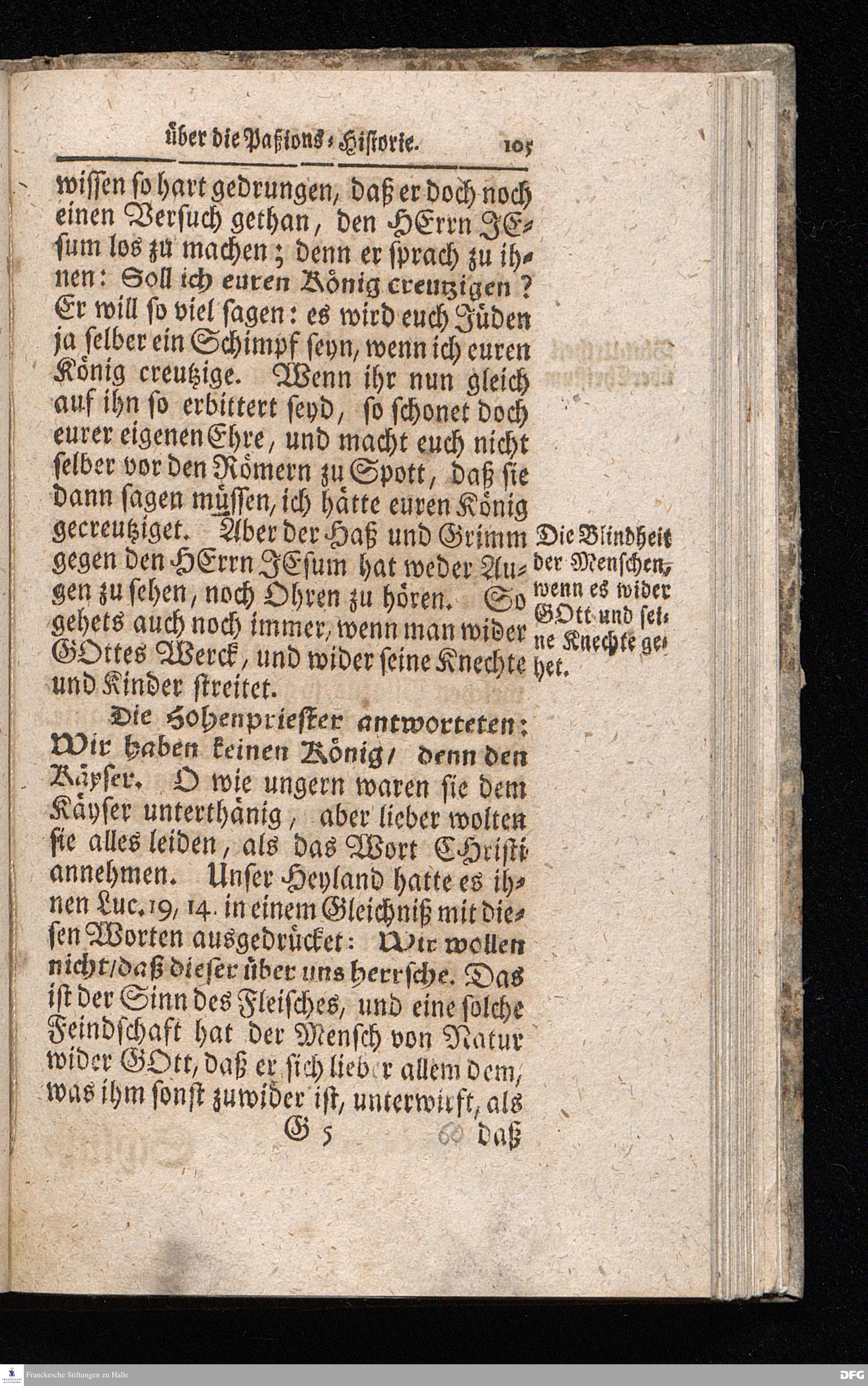August Hermann Franckens / S.Theol.Prof.& Past.zu S.Ulrich und des Gymnasii Scholarchæ, Oeffentliche Reden über die Paßions=Historie / Wie dieselbe vom Evangelisten Johanne im 18.u.19. Cap. beschrieben ist / gehalten Von Esto mihi bis Ostern 1716. In dem Wäysenhause zu Glaucha an Halle. EDITIO II. HALLE / Gedruckt und verlegt im Wäysenhause MDCCXIX.