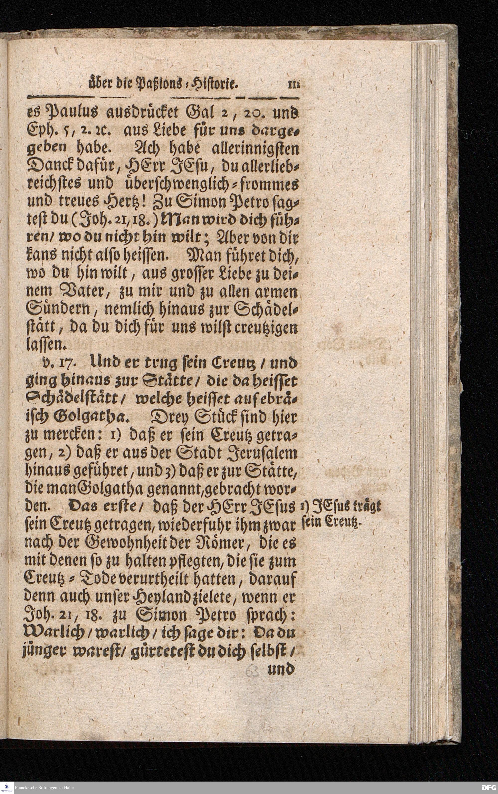 August Hermann Franckens / S.Theol.Prof.& Past.zu S.Ulrich und des Gymnasii Scholarchæ, Oeffentliche Reden über die Paßions=Historie / Wie dieselbe vom Evangelisten Johanne im 18.u.19. Cap. beschrieben ist / gehalten Von Esto mihi bis Ostern 1716. In dem Wäysenhause zu Glaucha an Halle. EDITIO II. HALLE / Gedruckt und verlegt im Wäysenhause MDCCXIX.