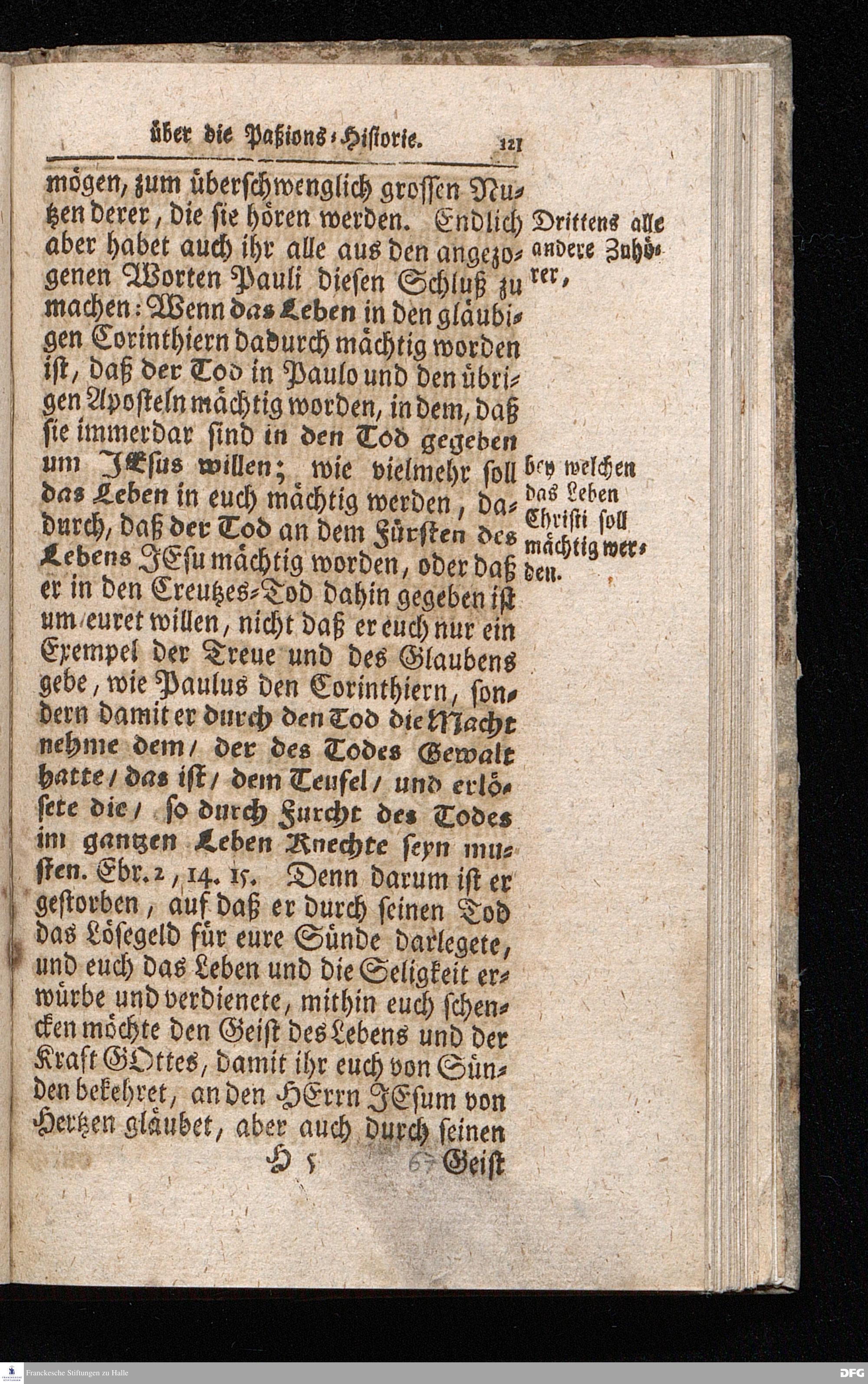 August Hermann Franckens / S.Theol.Prof.& Past.zu S.Ulrich und des Gymnasii Scholarchæ, Oeffentliche Reden über die Paßions=Historie / Wie dieselbe vom Evangelisten Johanne im 18.u.19. Cap. beschrieben ist / gehalten Von Esto mihi bis Ostern 1716. In dem Wäysenhause zu Glaucha an Halle. EDITIO II. HALLE / Gedruckt und verlegt im Wäysenhause MDCCXIX.