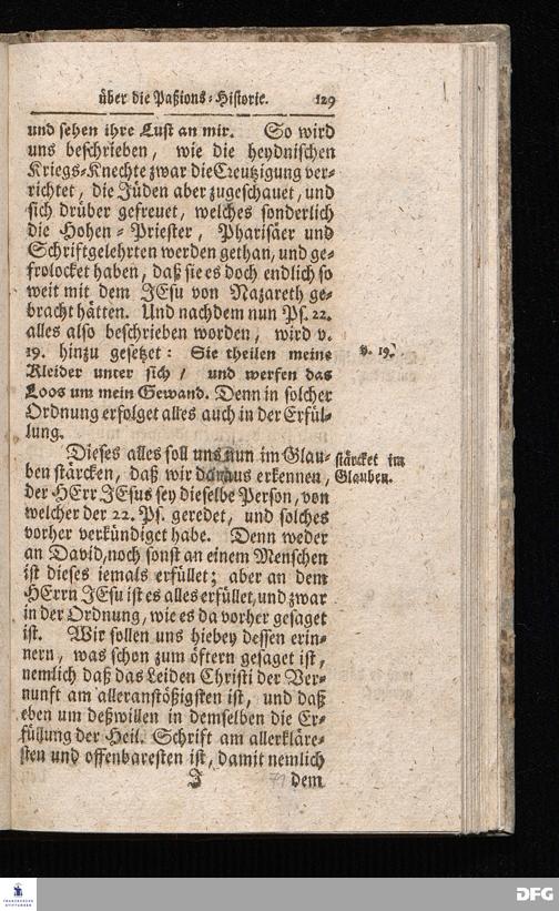 August Hermann Franckens / S.Theol.Prof.& Past.zu S.Ulrich und des Gymnasii Scholarchæ, Oeffentliche Reden über die Paßions=Historie / Wie dieselbe vom Evangelisten Johanne im 18.u.19. Cap. beschrieben ist / gehalten Von Esto mihi bis Ostern 1716. In dem Wäysenhause zu Glaucha an Halle. EDITIO II. HALLE / Gedruckt und verlegt im Wäysenhause MDCCXIX.